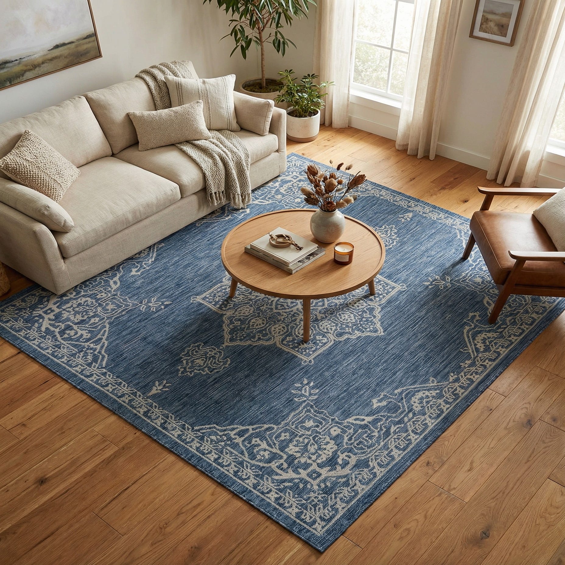 Detail image of 7' 10 x 7' 10  Washable Traditional Indoor / Outdoor Square Rug
