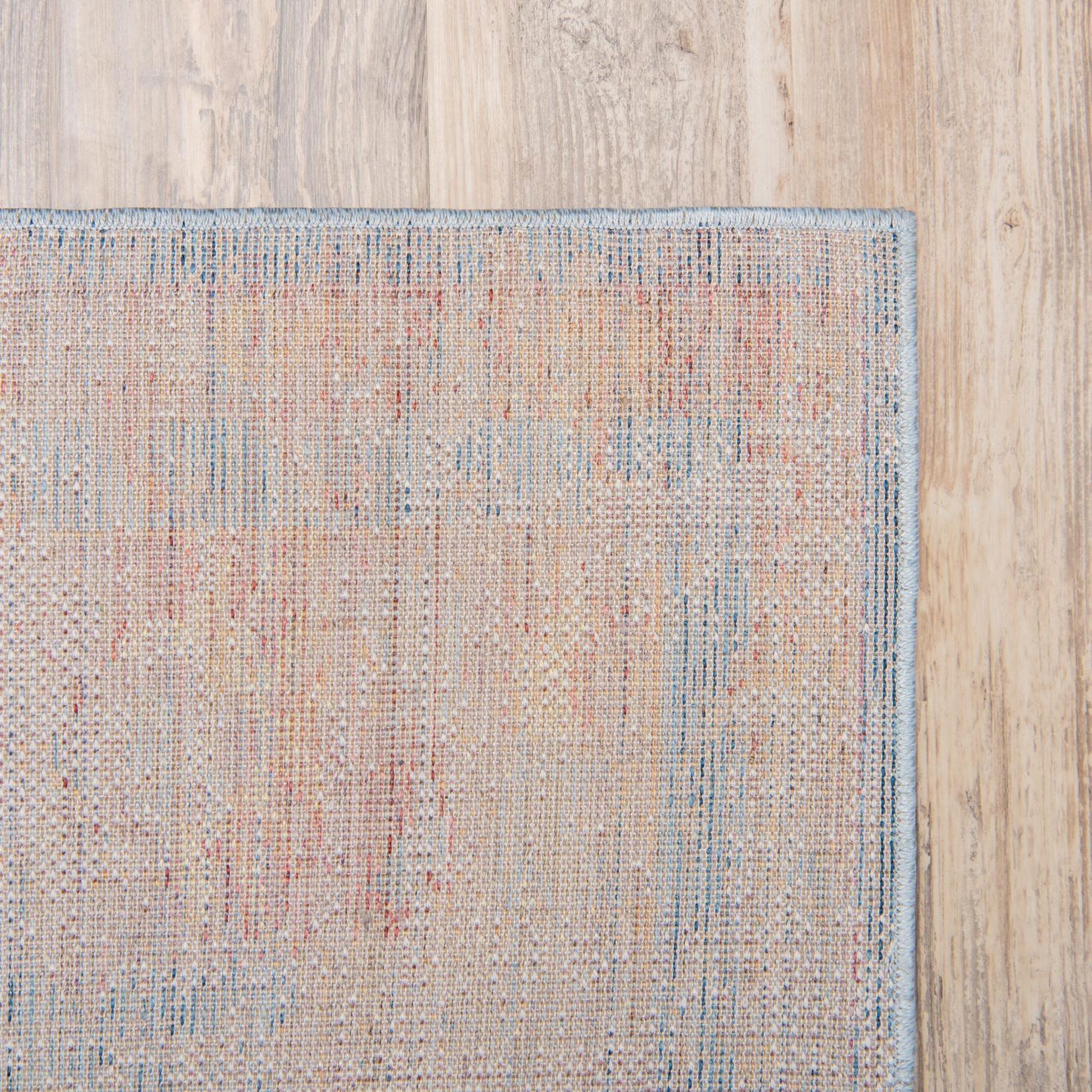 Primary color is Blue. Colors in this rug include: Blue, Beige, Burgundy, Gold, Navy Blue, Orange, Red, Pink.