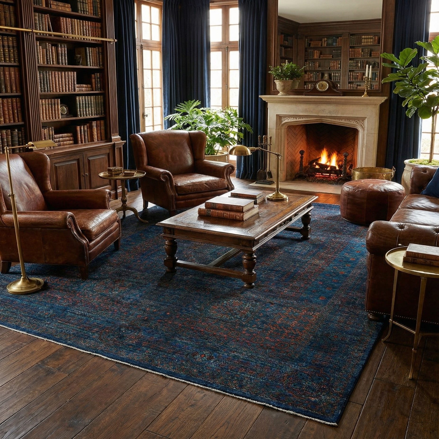 Primary color is Blue. Colors in this rug include: Blue, Blue, Dark Blue, Orange, Green.
