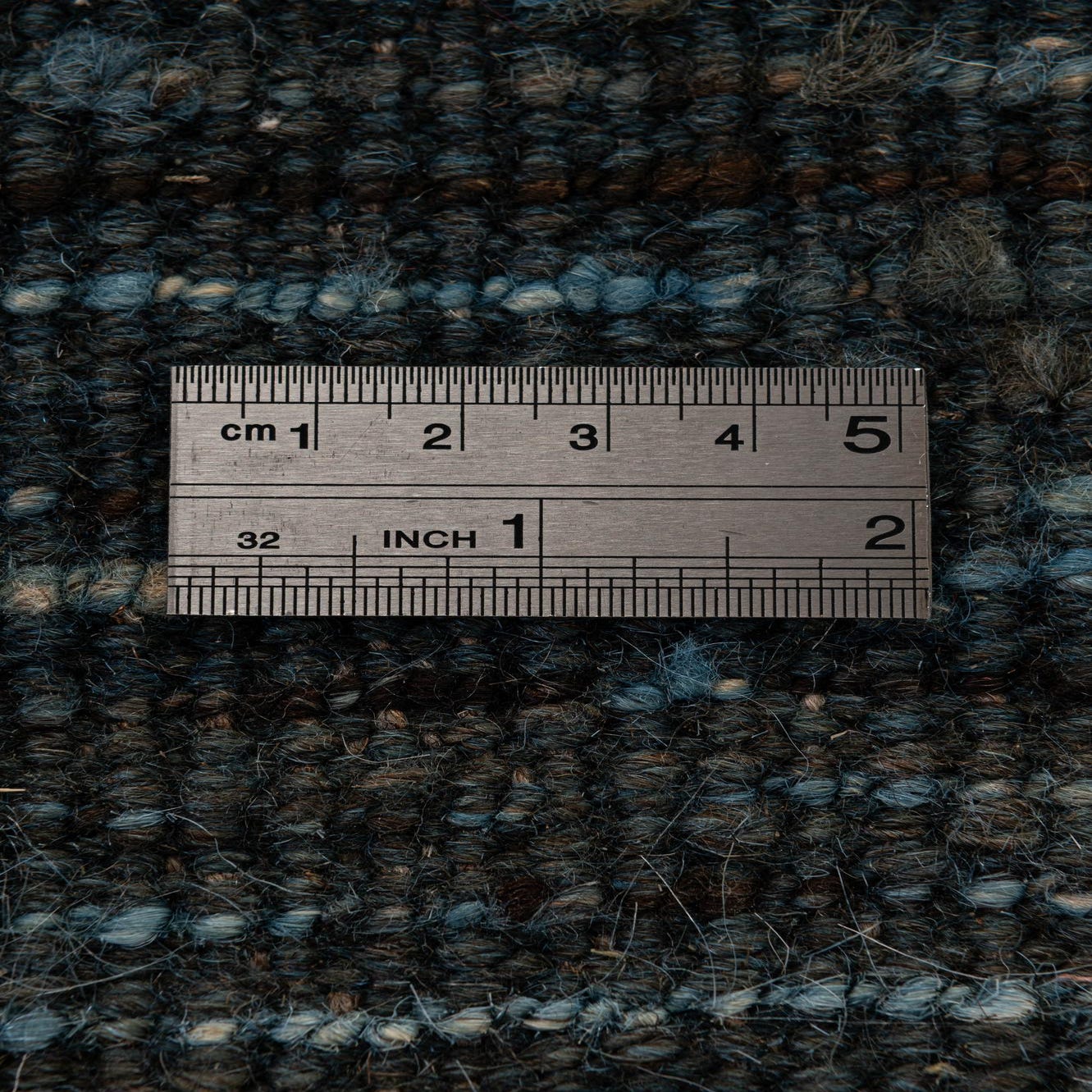 Primary color is Blue. Colors in this rug include: Blue, Brown, Gray, Ivory.