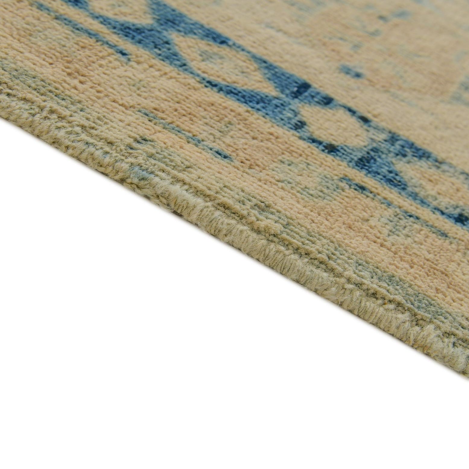 Primary color is Blue. Colors in this rug include: Blue, Beige, Cream, Navy Blue.