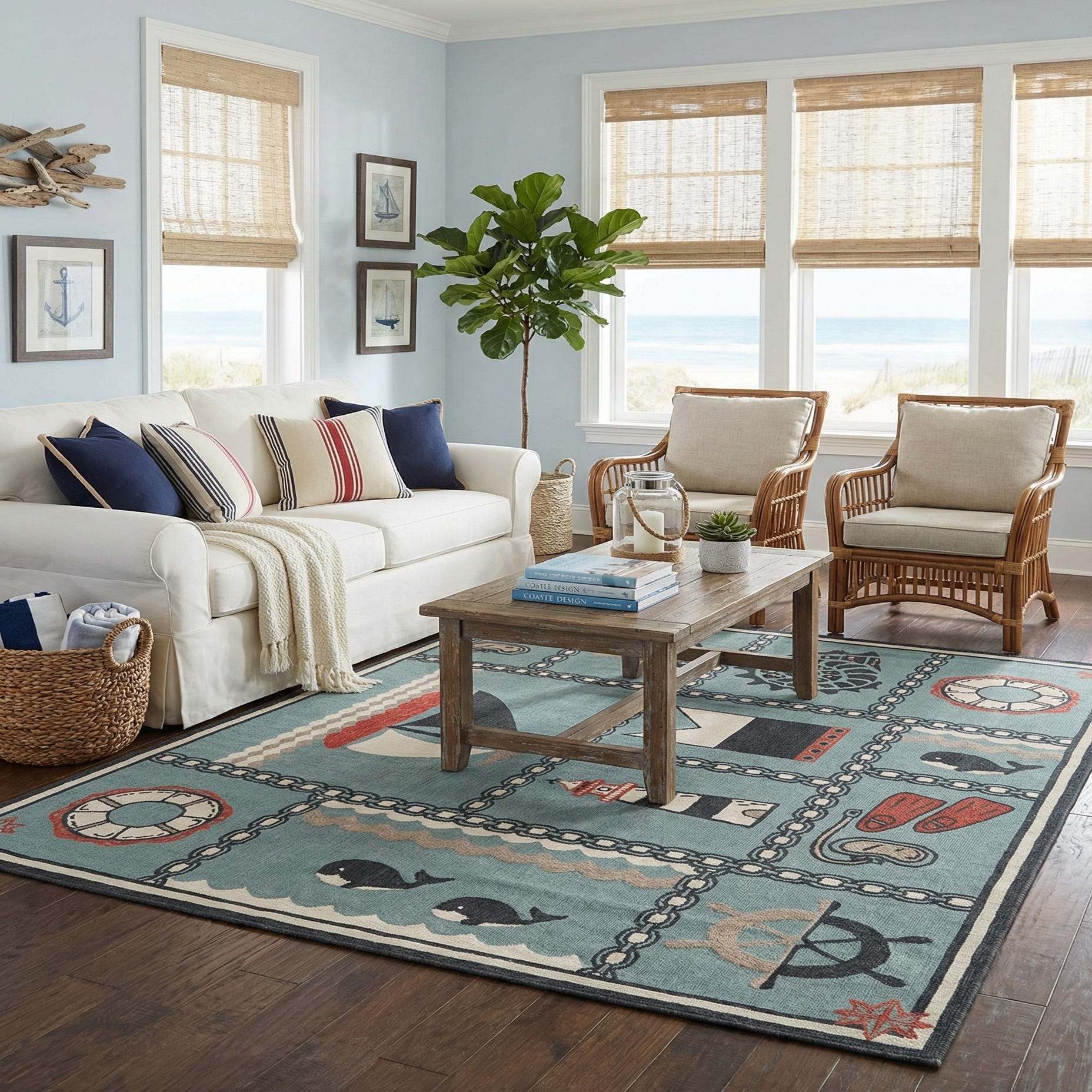 7' 10 x 10' Washable Coastal Indoor / Outdoor Rug