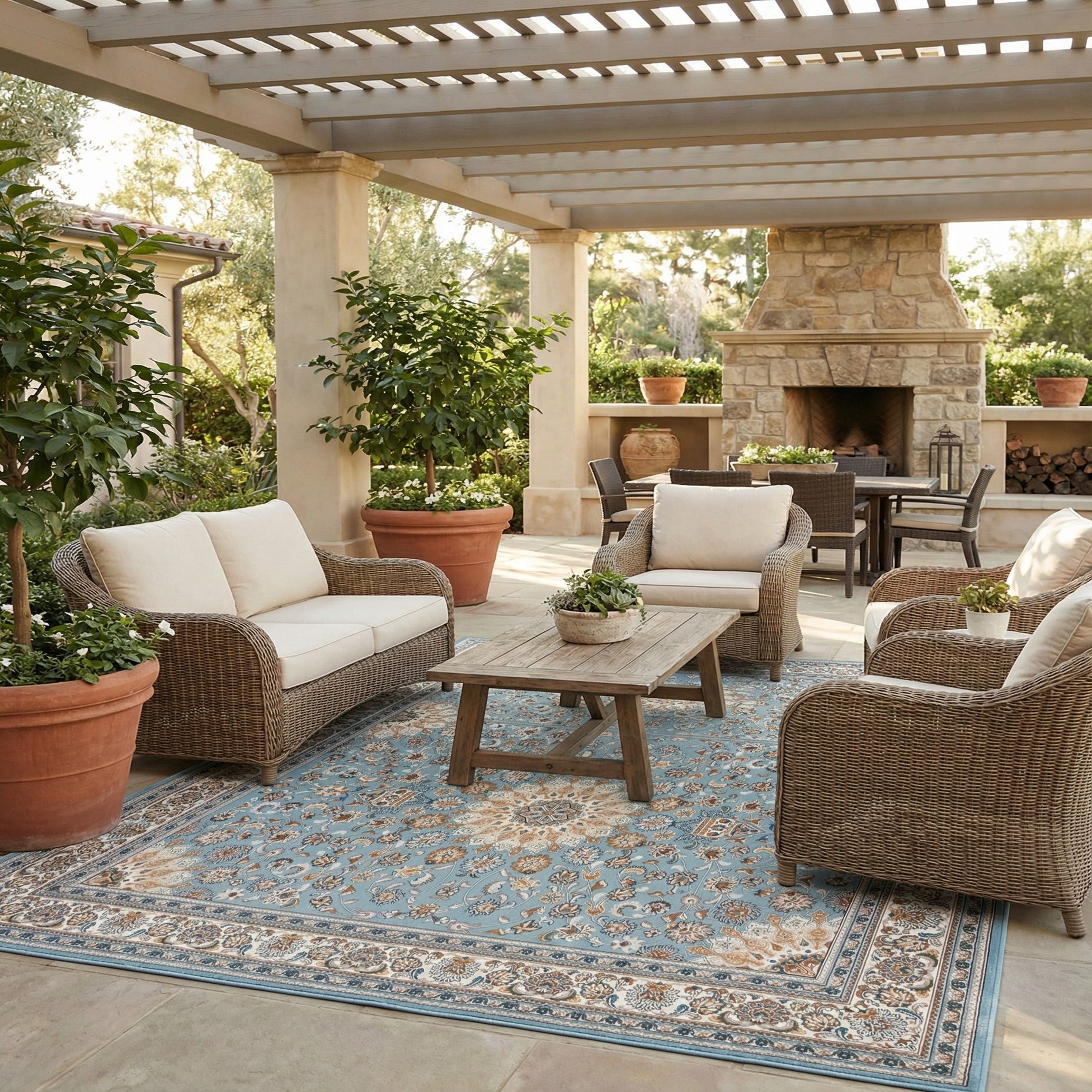 7' 10 x 10' Washable Traditional Indoor / Outdoor Rug