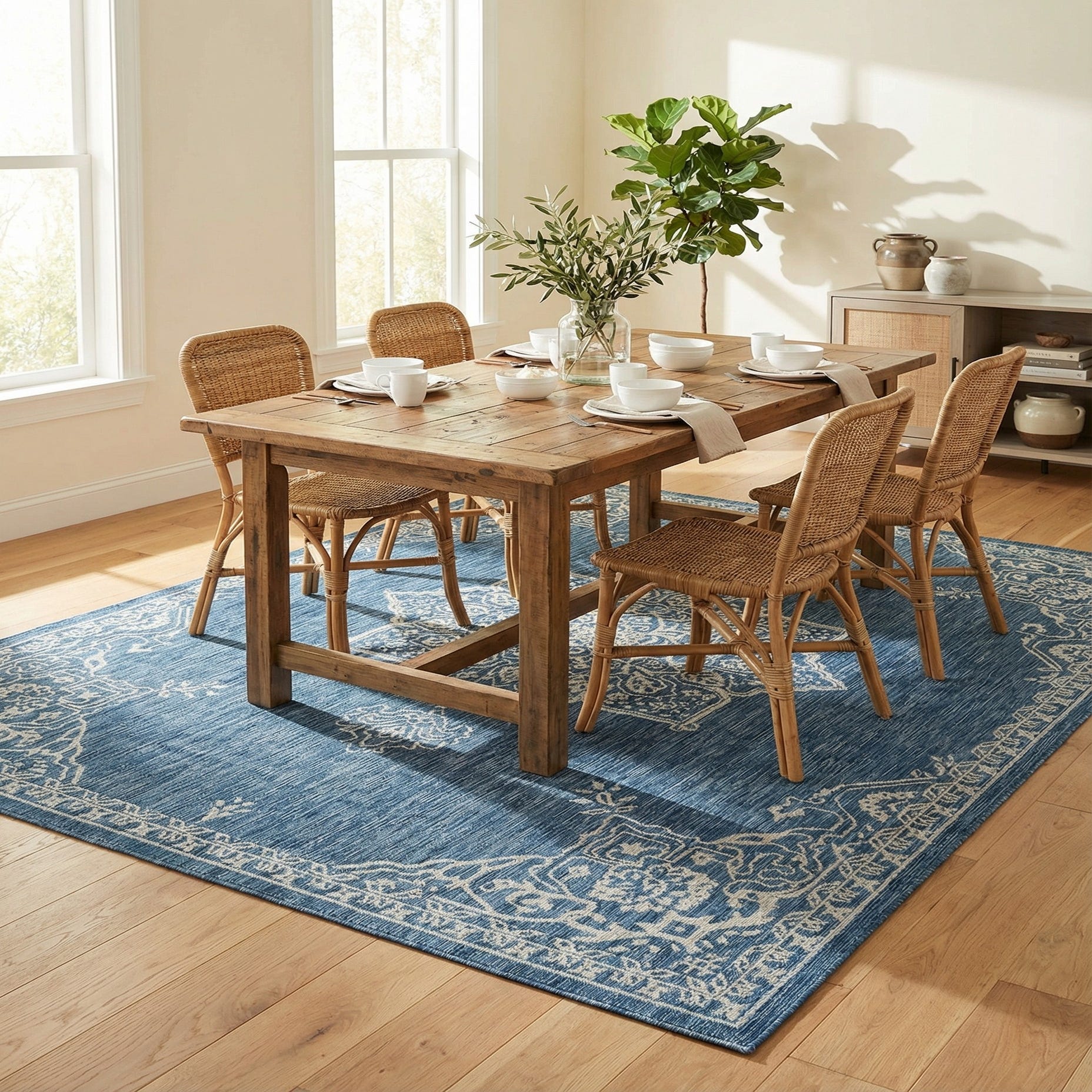 Detail image of 7' 10 x 10'  Washable Traditional Indoor / Outdoor Rug