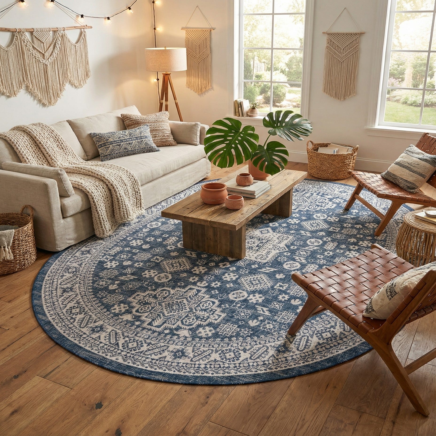 7' 10 x 10' Washable Aztec Indoor / Outdoor Oval Rug
