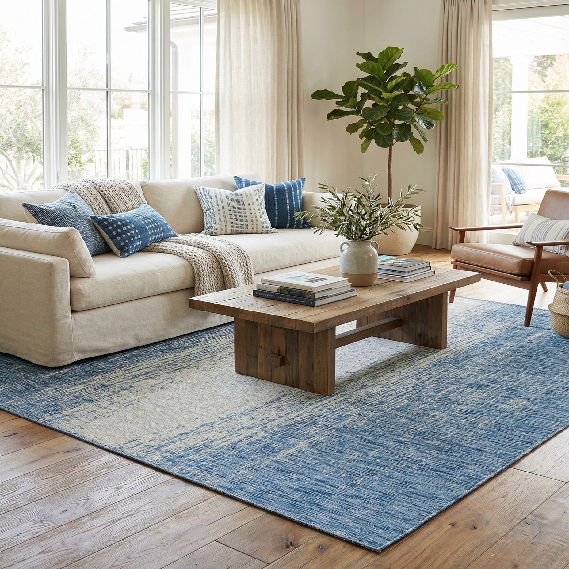 Primary color is Blue. Colors in this rug include: Blue, Gray.