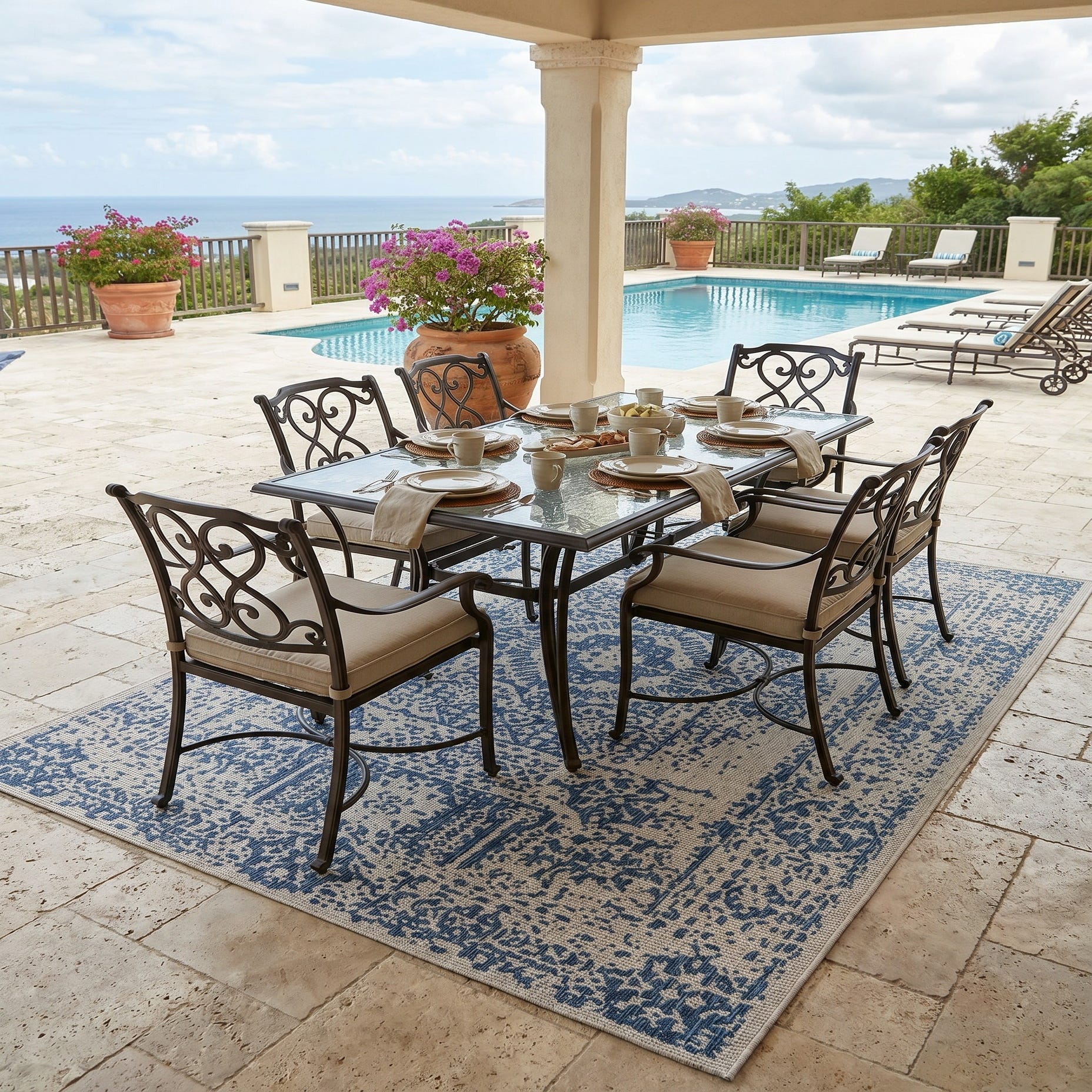 7' 10 x 11' Easy-Clean Traditional Indoor / Outdoor Rug