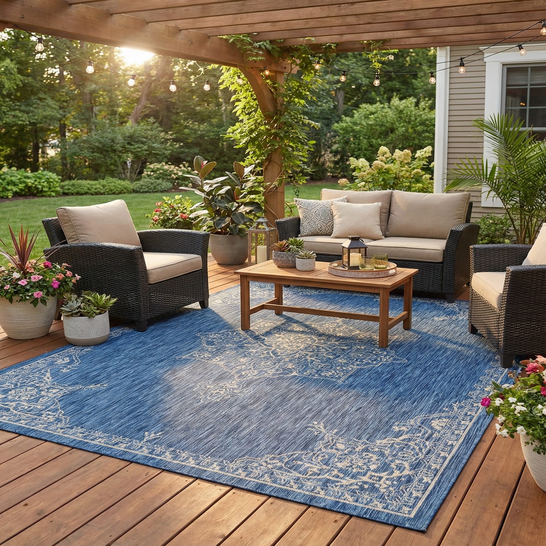 7' 10 x 11' Washable Traditional Indoor / Outdoor Rug