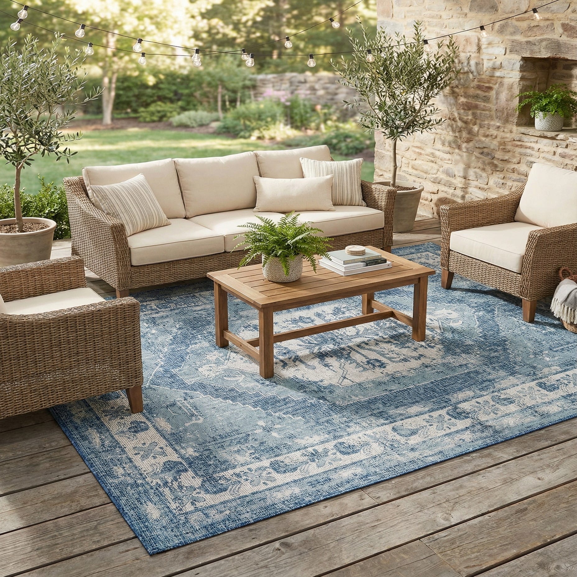 7' 10 x 11' Washable Traditional Indoor / Outdoor Rug