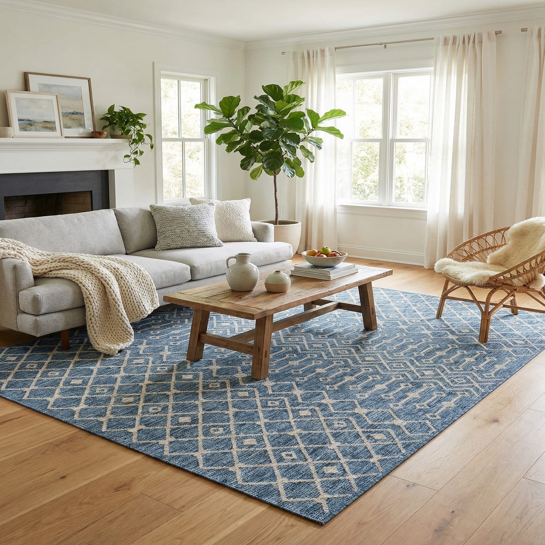 Primary color is Blue. Colors in this rug include: Blue, Gray.
