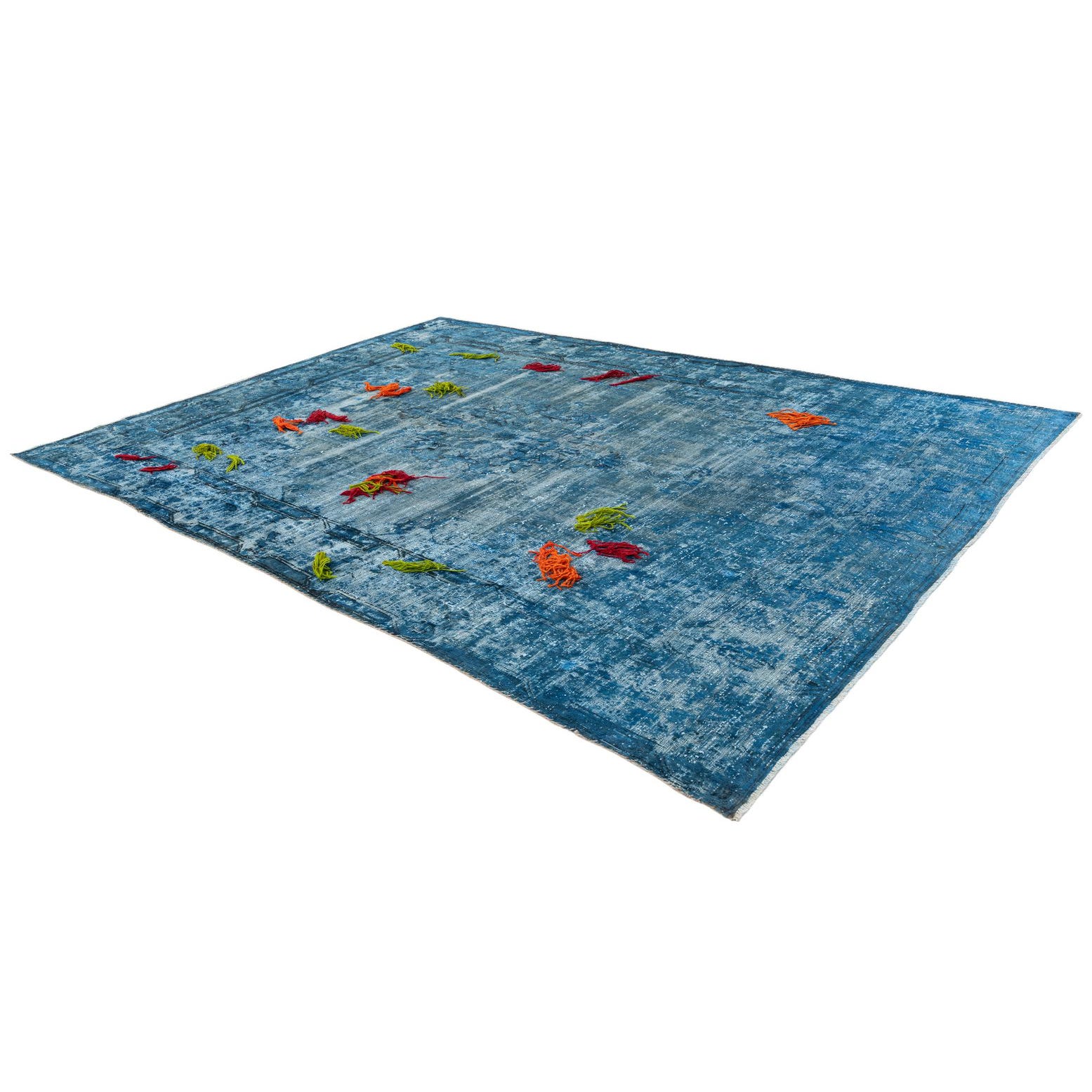 This Persian Ultra Vintage rug is an antique Persian Rug that has been washed, over-dyed, and then shaved down to a low pile. Look at the detail pictures to fully appreciate the uniqueness of this piece.