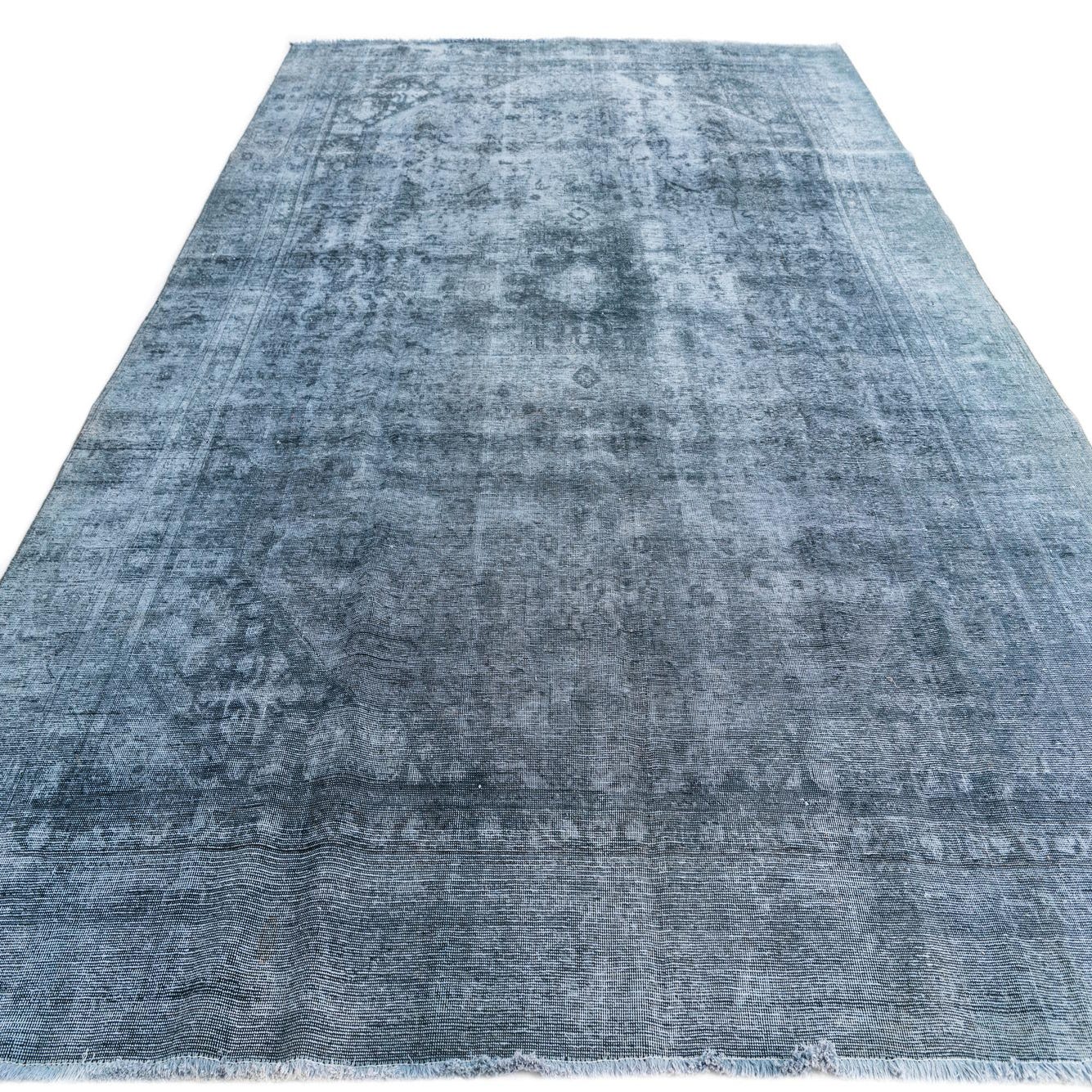 This Persian Ultra Vintage rug is an antique Persian Rug that has been washed, over-dyed, and then shaved down to a low pile. Look at the detail pictures to fully appreciate the uniqueness of this piece.
