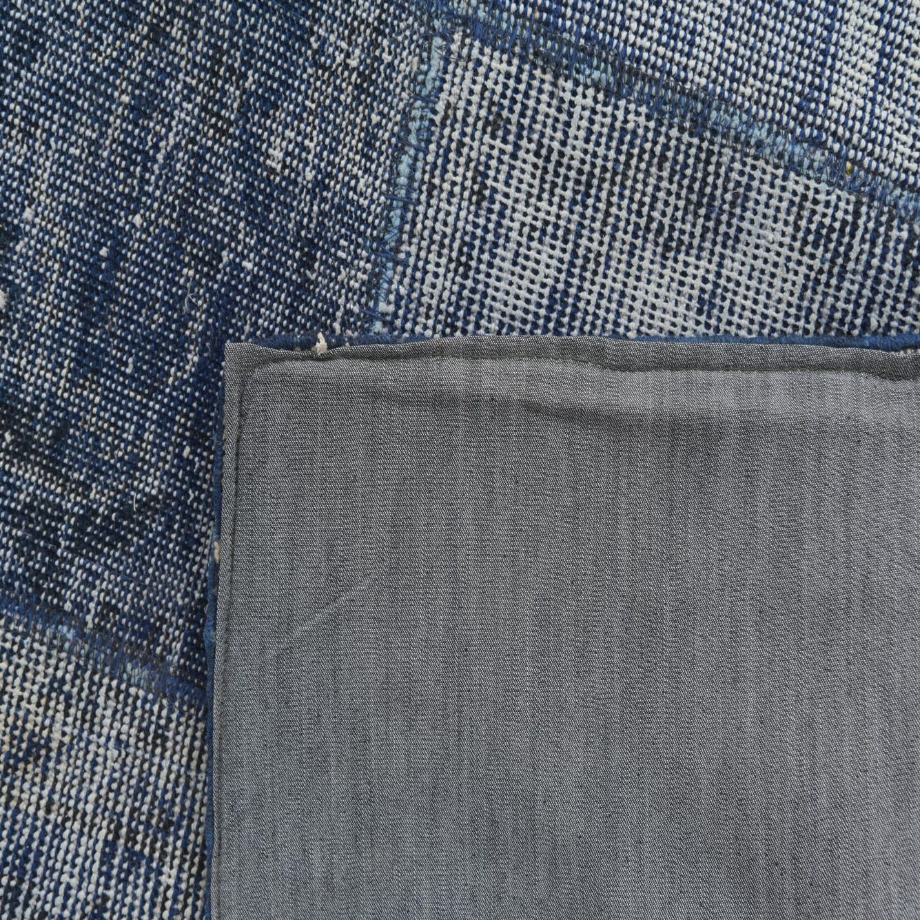 Primary color is Blue. Colors in this rug include: Blue, Black, Ivory.