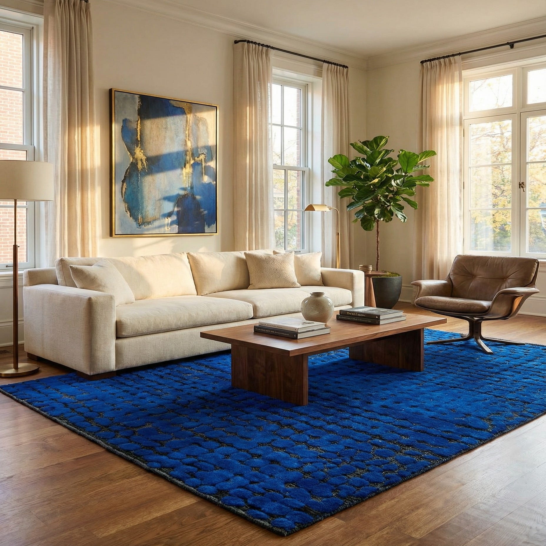 Primary color is Blue. Colors in this rug include: Blue, Black.