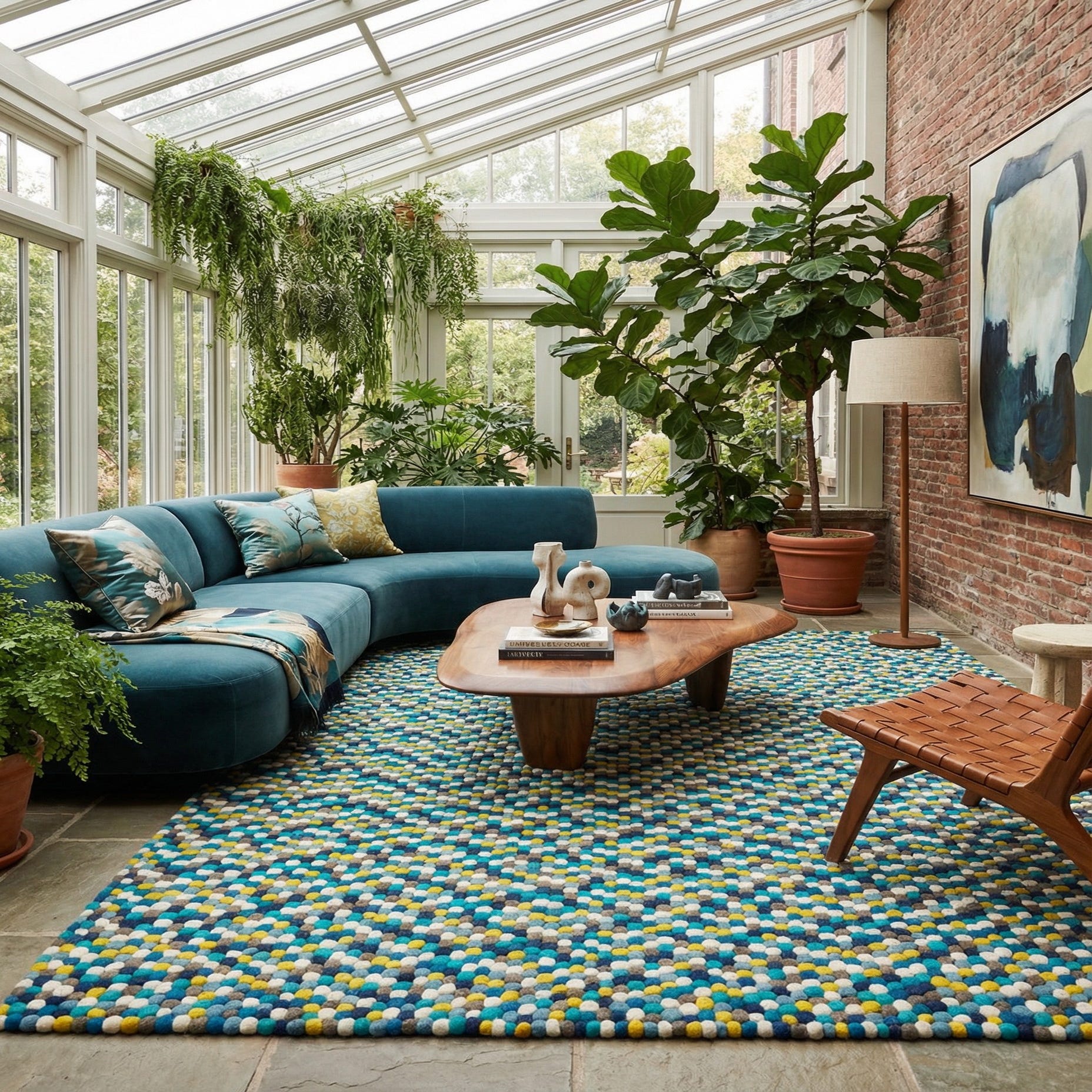 9' x 12' Hand Woven Felt Ball Wool Rug