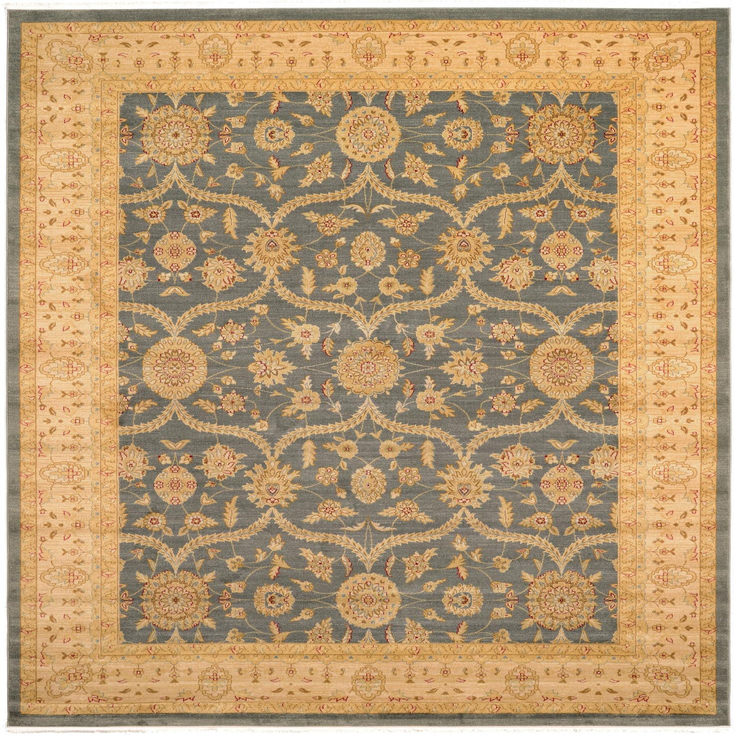 Primary color is Blue. Colors in this rug include: Blue, Beige, Cream, Light Brown, Red.