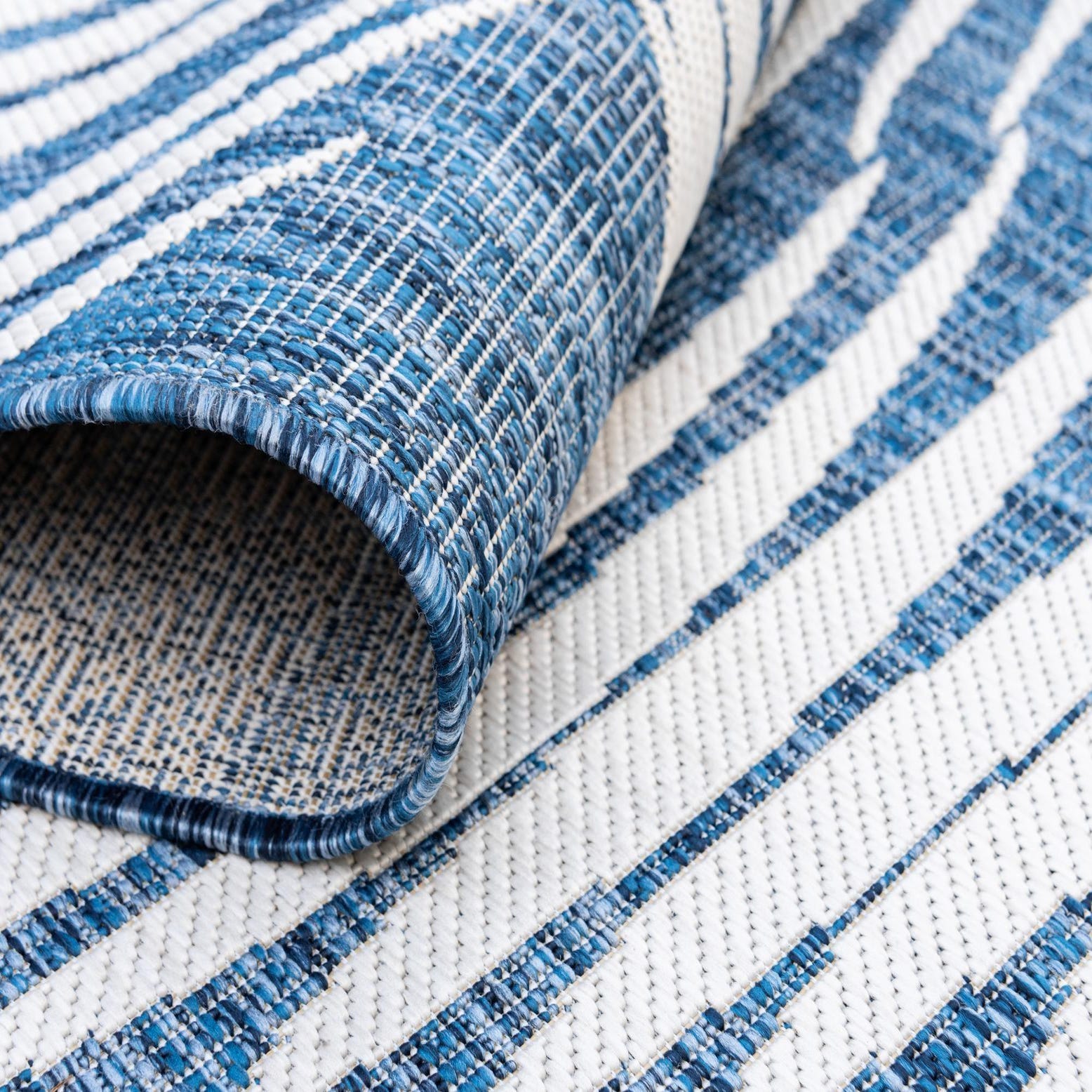 Primary color is Blue. Colors in this rug include: Blue, Ivory.