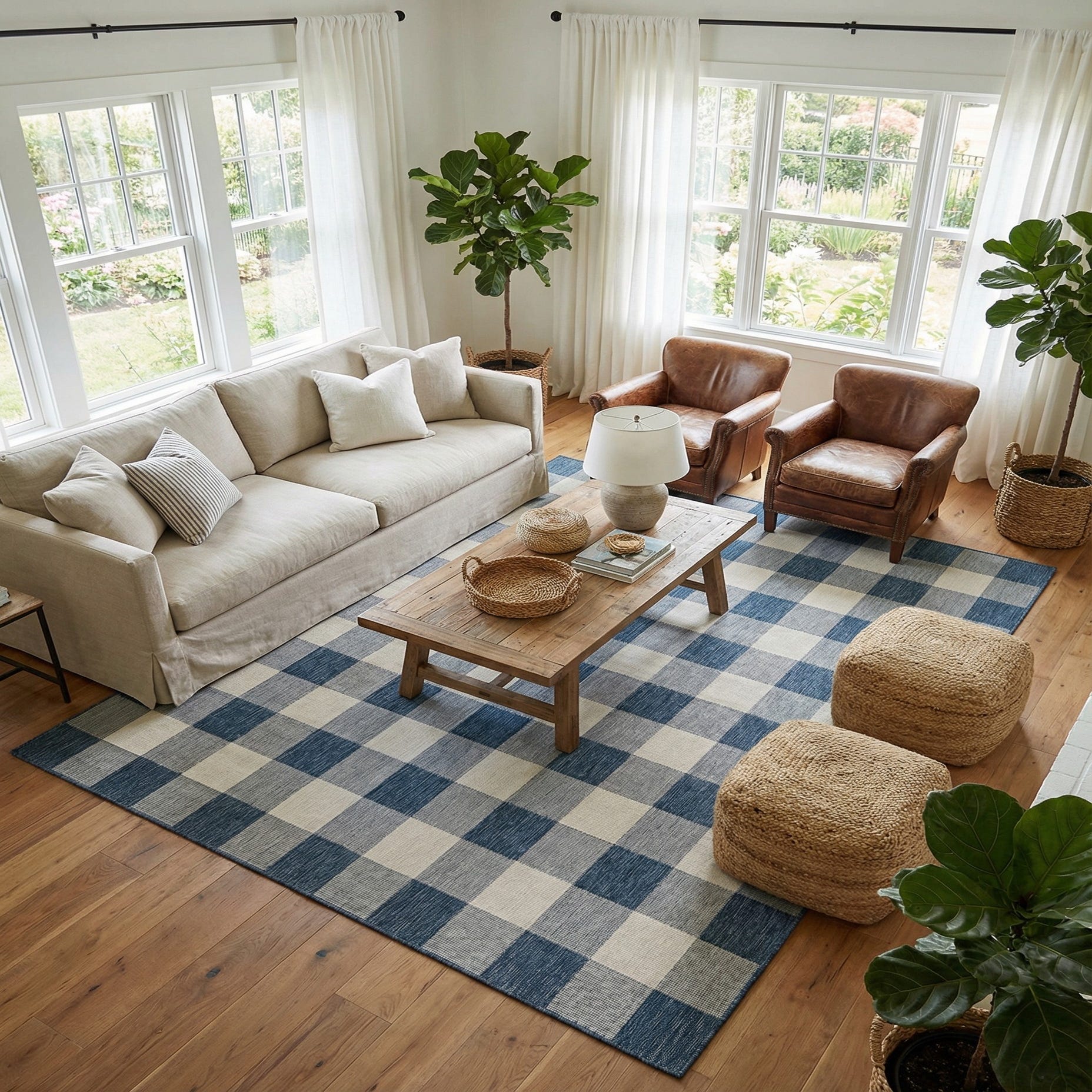 9' x 12' Washable Checkered Indoor / Outdoor Rug