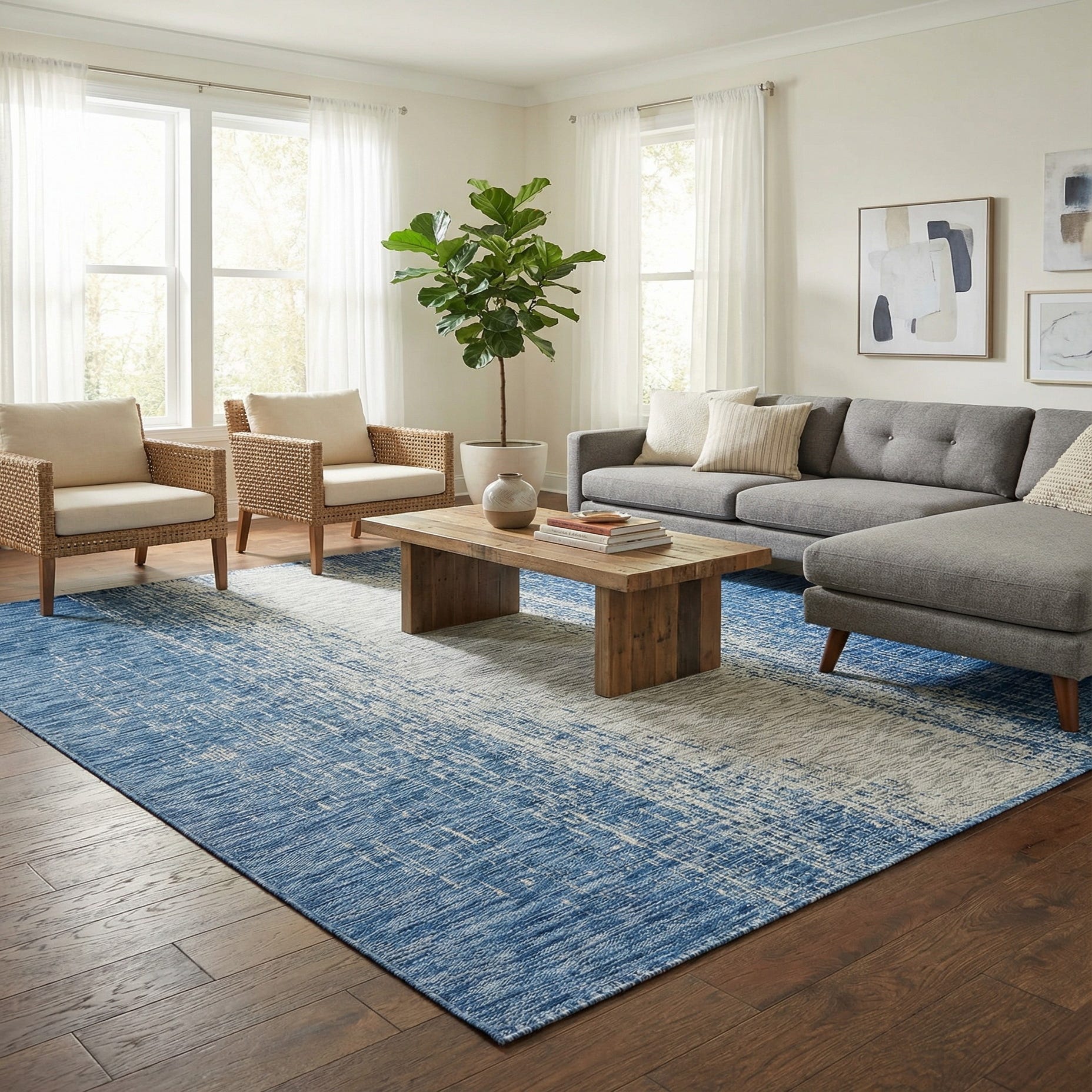 Primary color is Blue. Colors in this rug include: Blue, Gray.