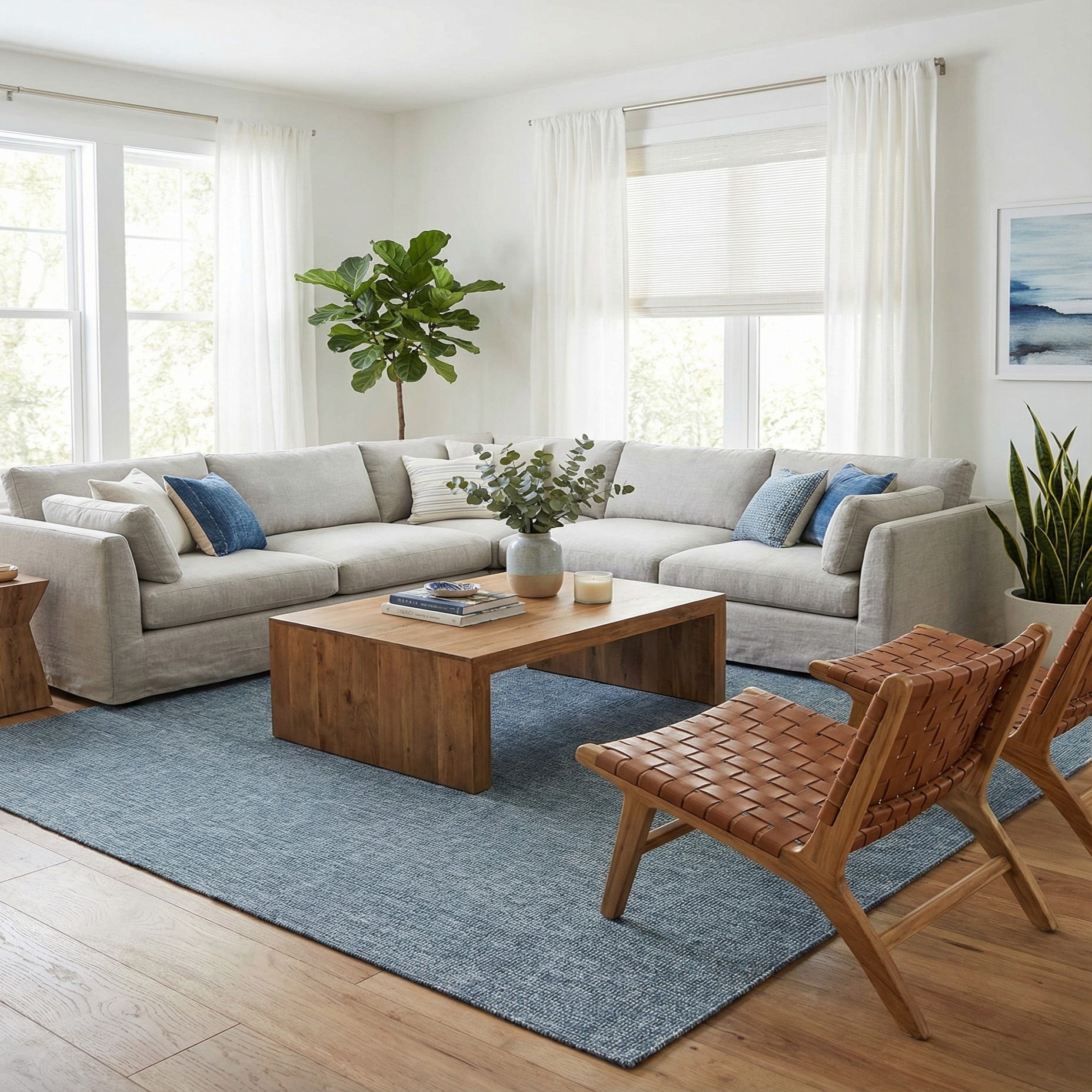 Primary color is Blue. Colors in this rug include: Blue, Light Blue.