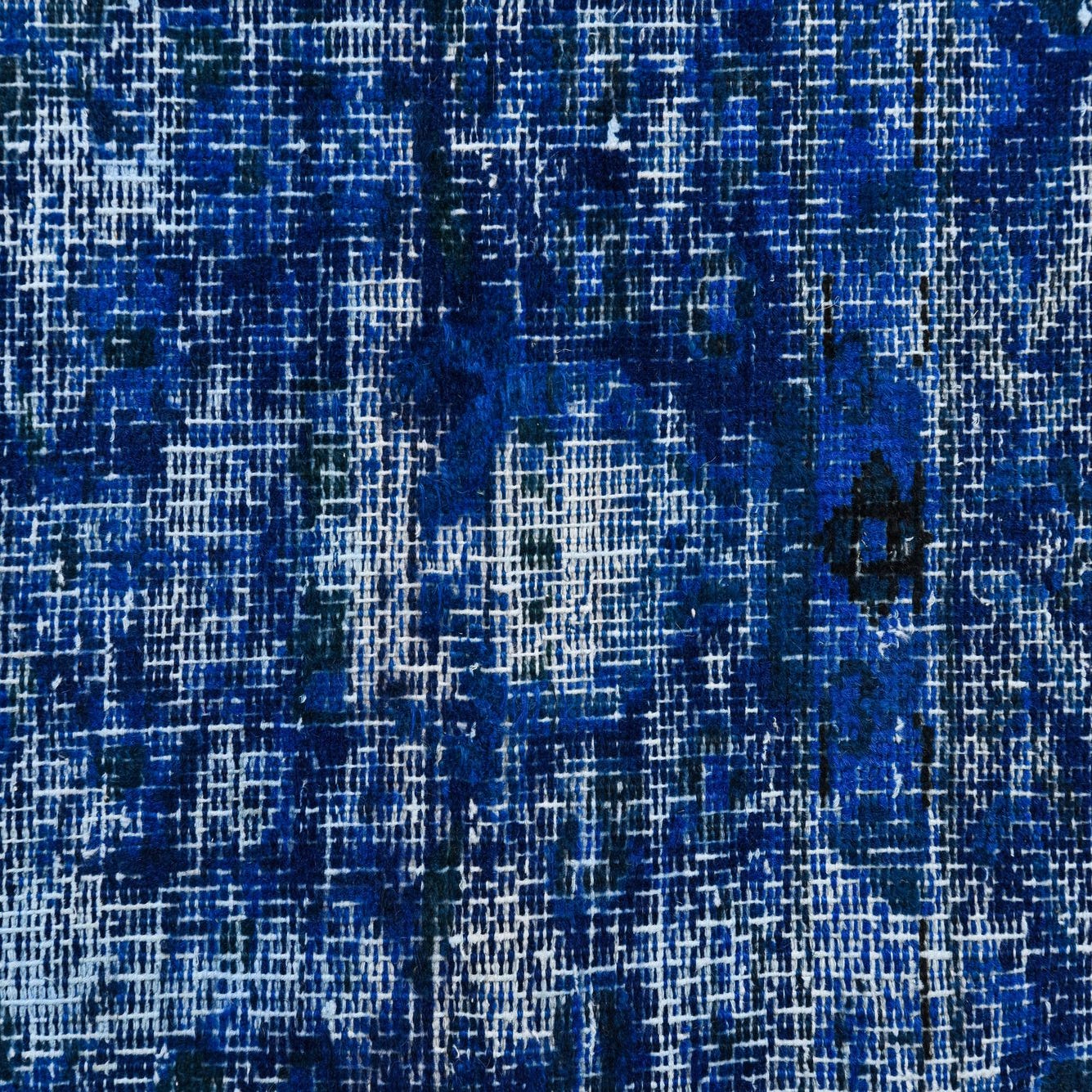 Primary color is Blue. Colors in this rug include: Blue, Black, Ivory.