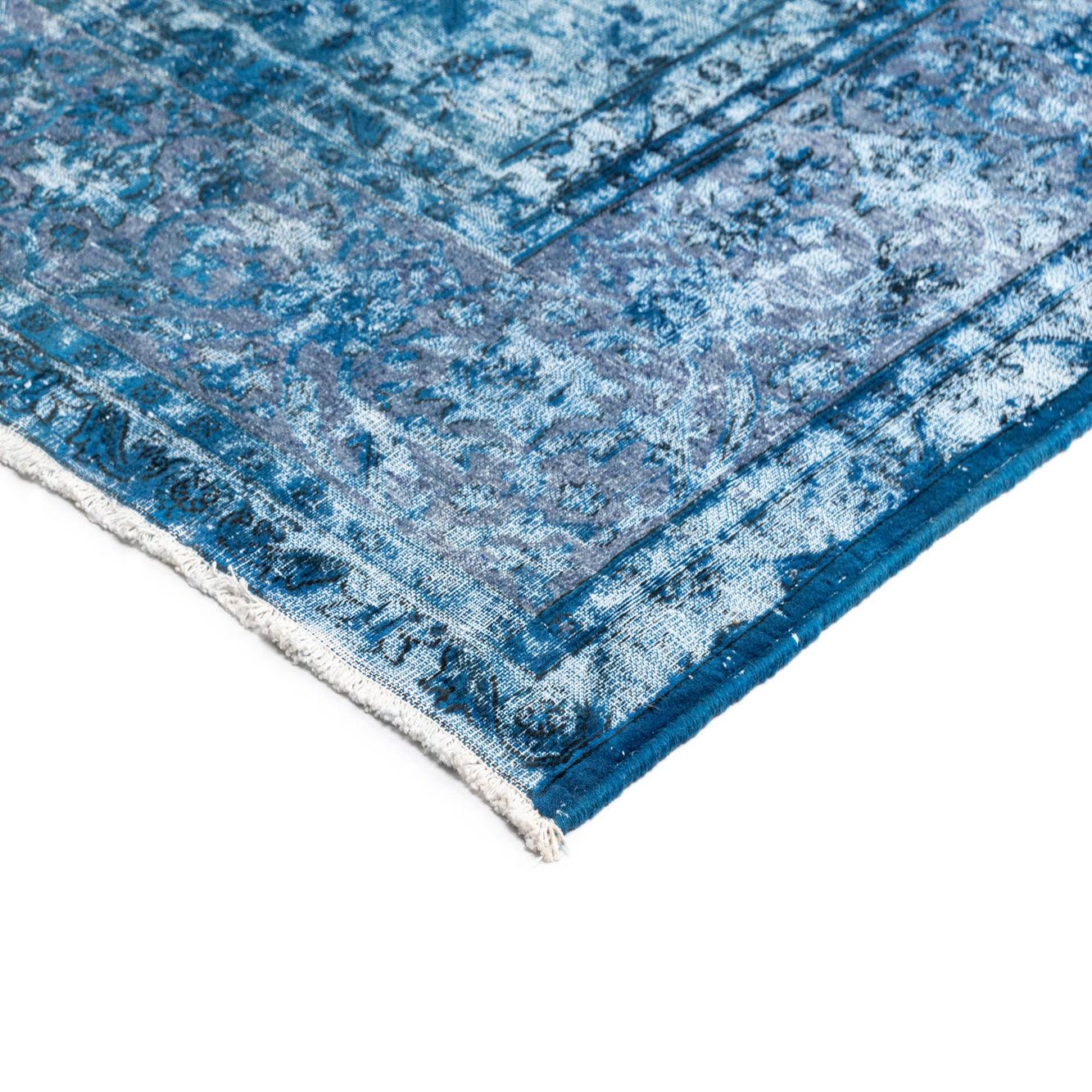 Primary color is Blue. Colors in this rug include: Blue, Blue, Grey, White, Black.