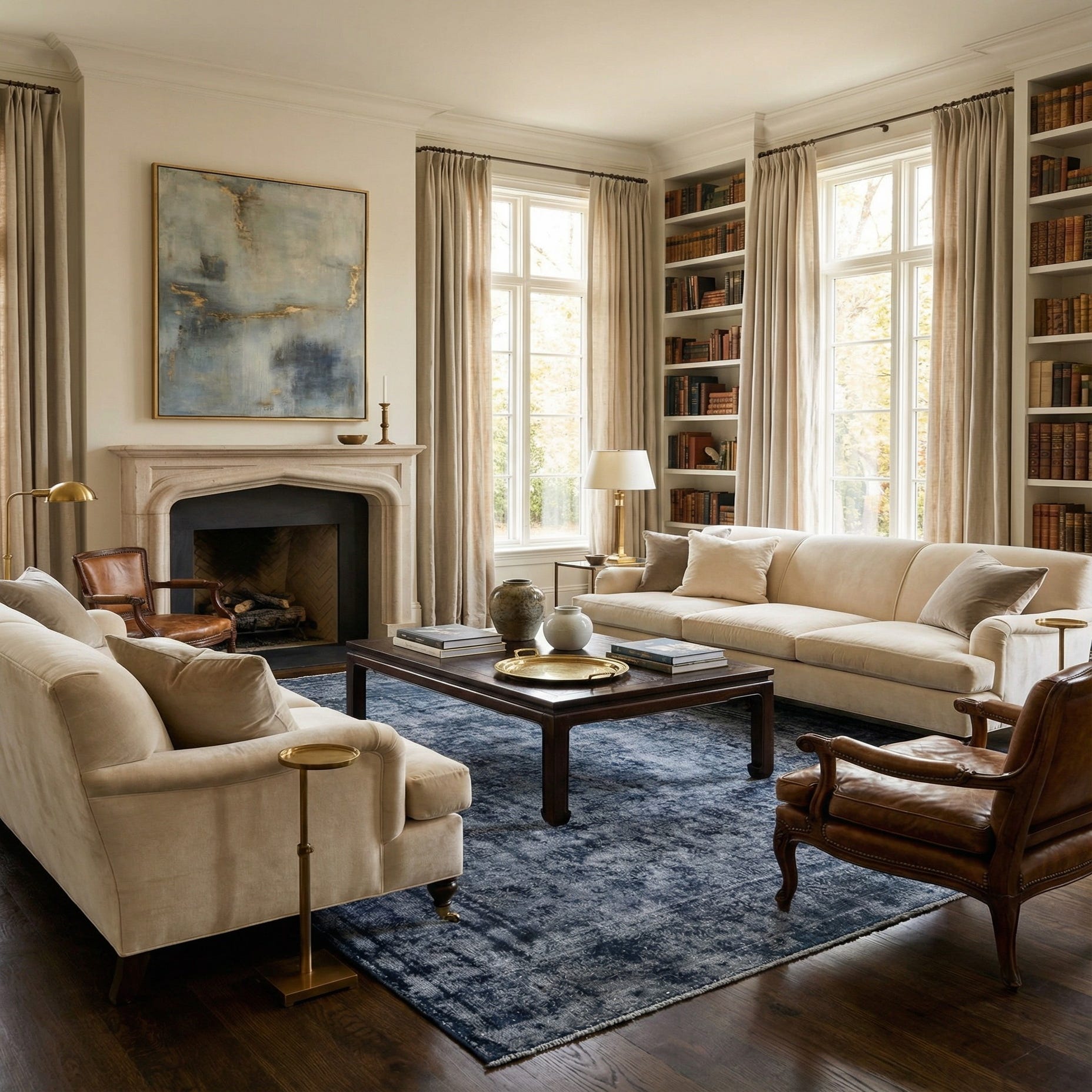Primary color is Blue. Colors in this rug include: Blue, Dark Blue, Grey.