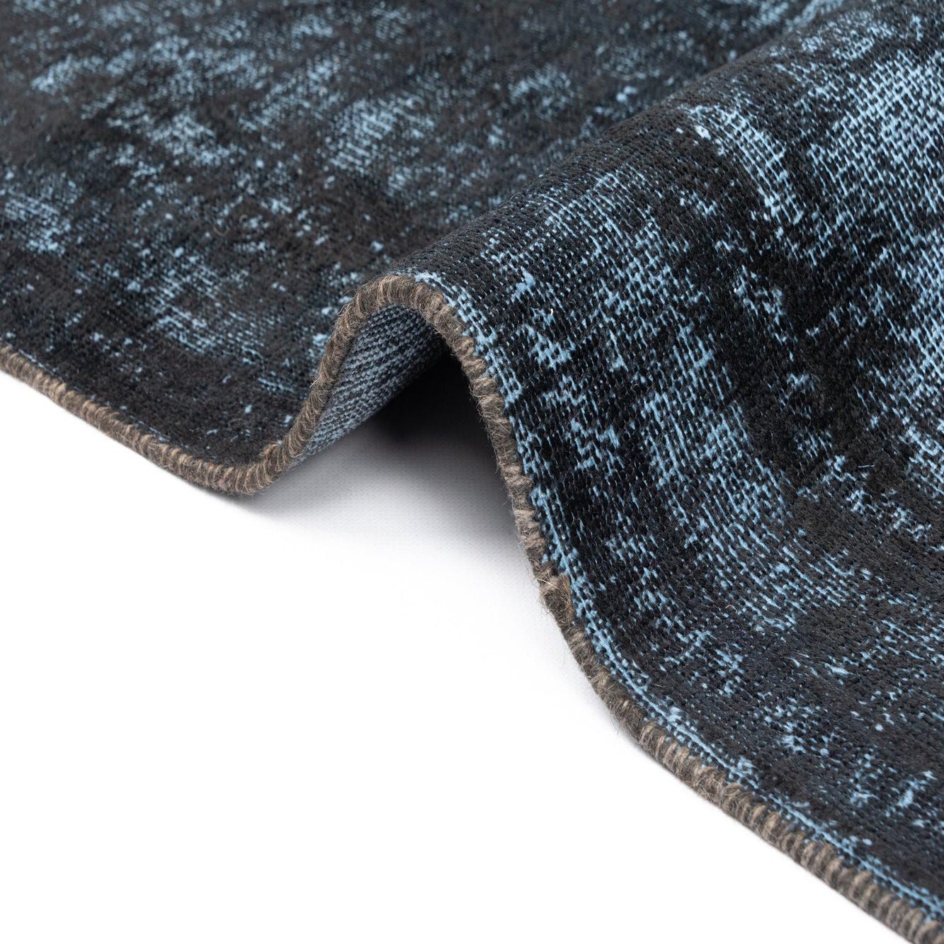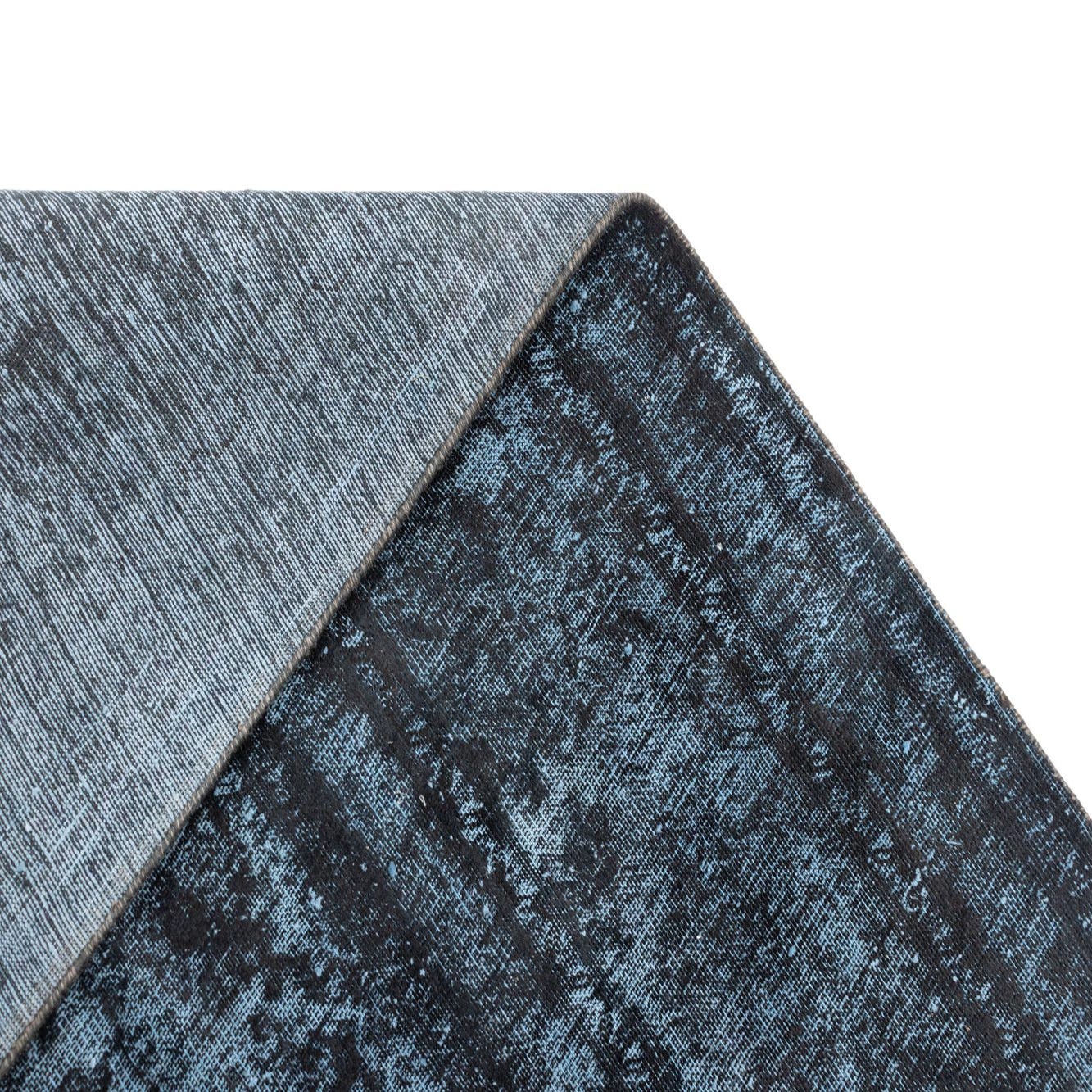 Primary color is Blue. Colors in this rug include: Blue, Black, Blue.