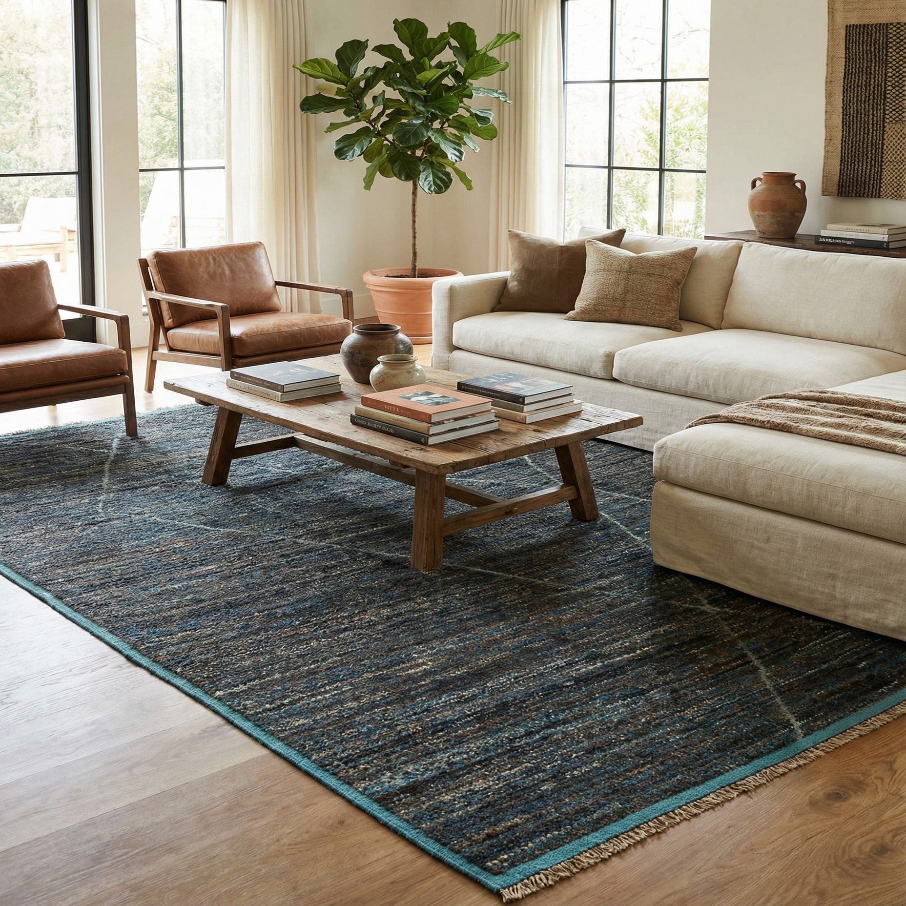 Primary color is Blue and Brown. Colors in this rug include: Blue and Brown, Beige, Light Brown.
