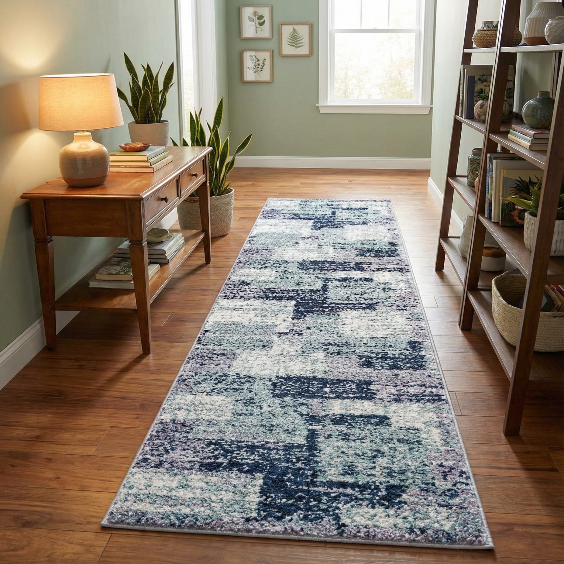 Primary color is Blue and Gray. Colors in this rug include: Blue and Gray, Ivory, Navy Blue, Light Blue.
