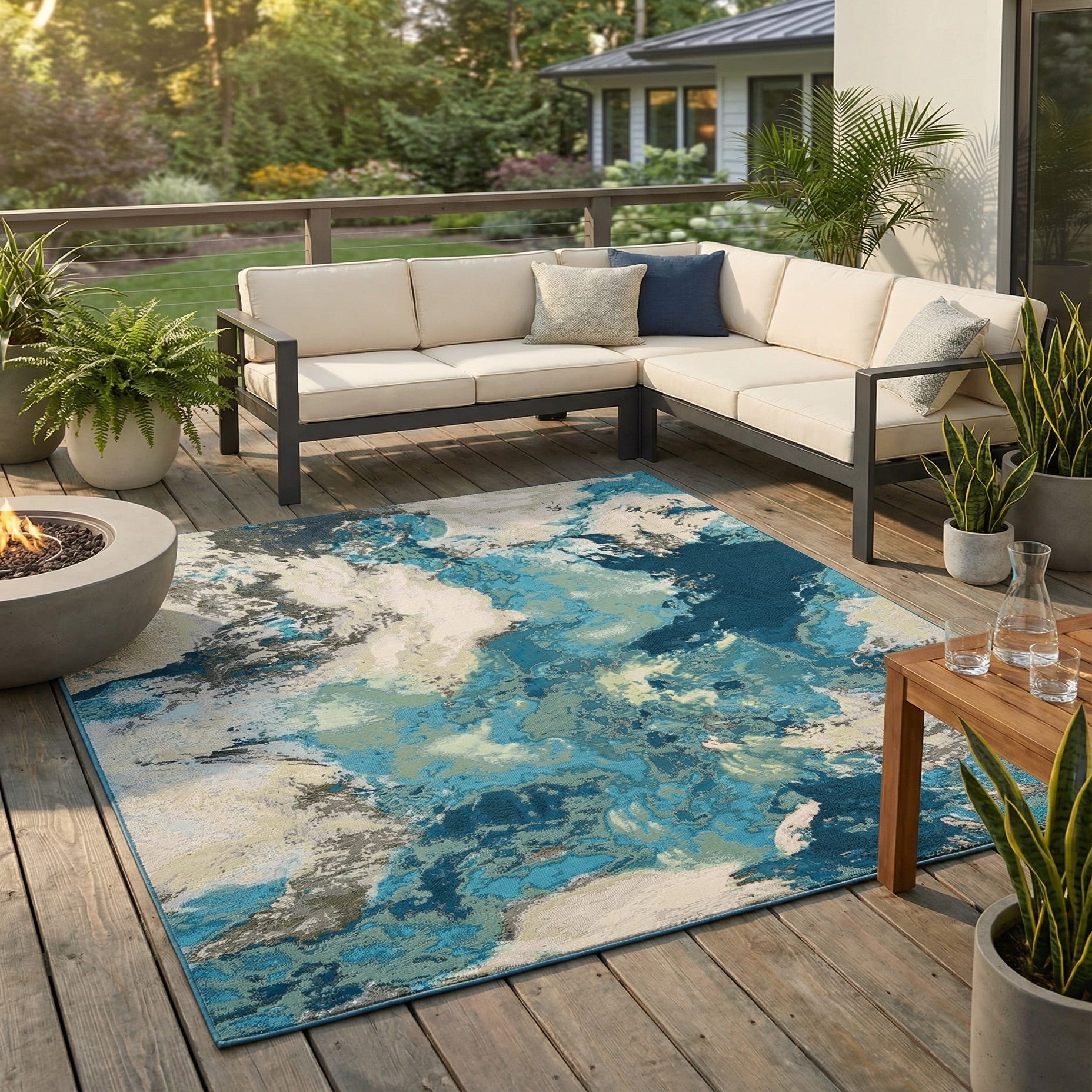 7' 10 x 7' 10 Washable Modern Indoor / Outdoor Square Rug