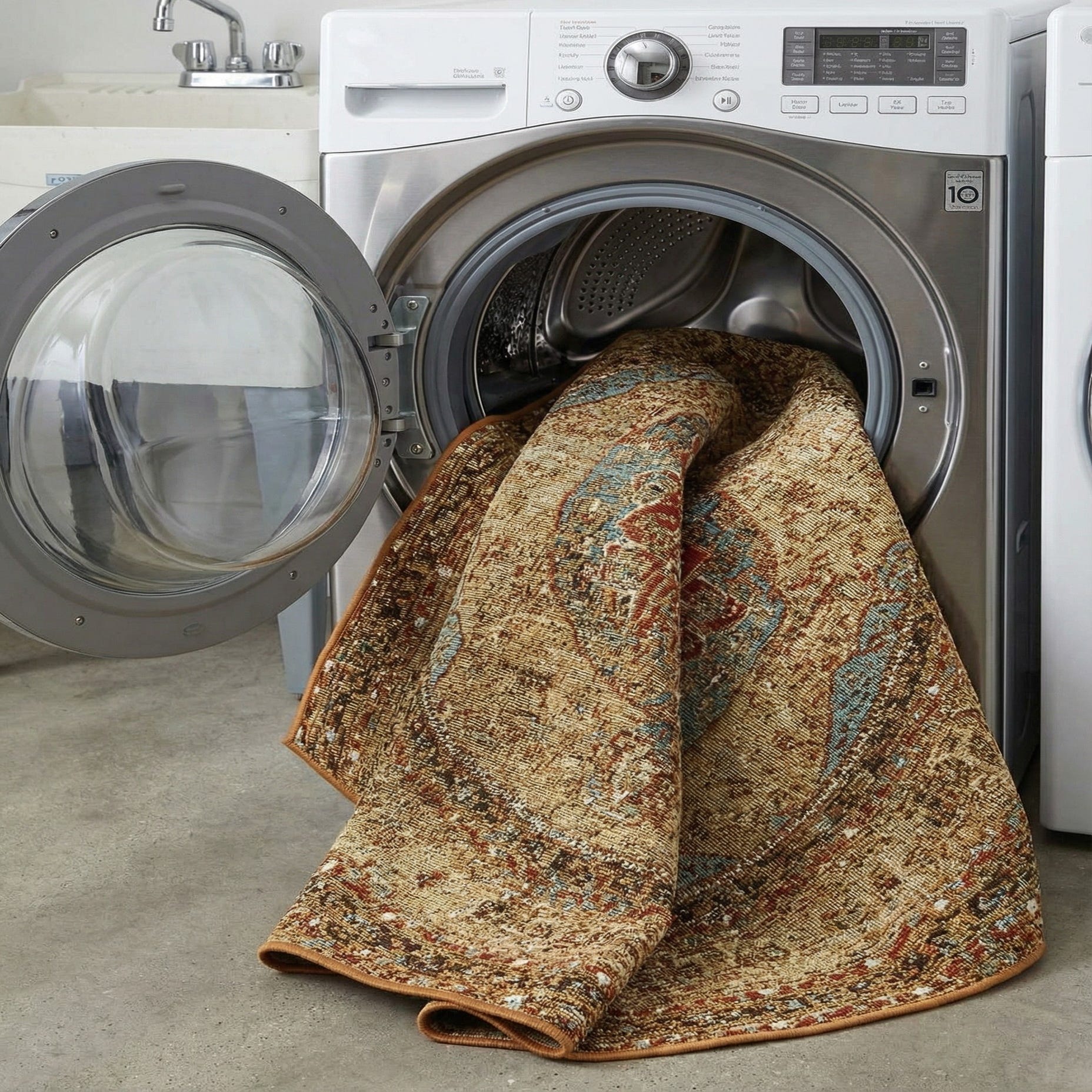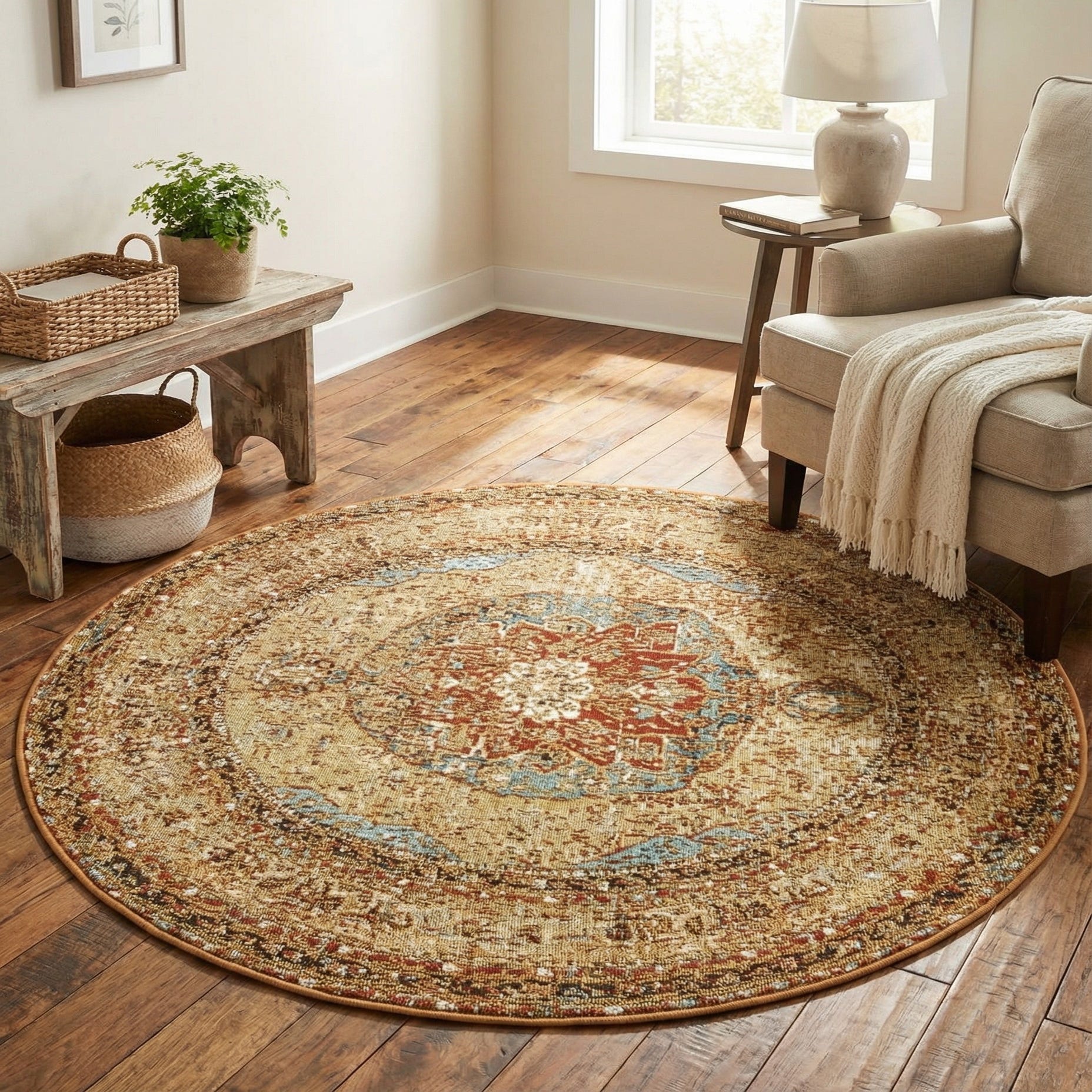 4' x 4' Washable Traditional Indoor / Outdoor Round Rug