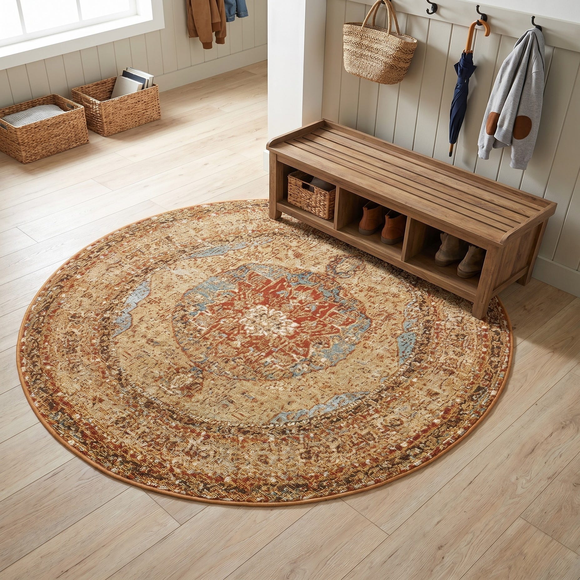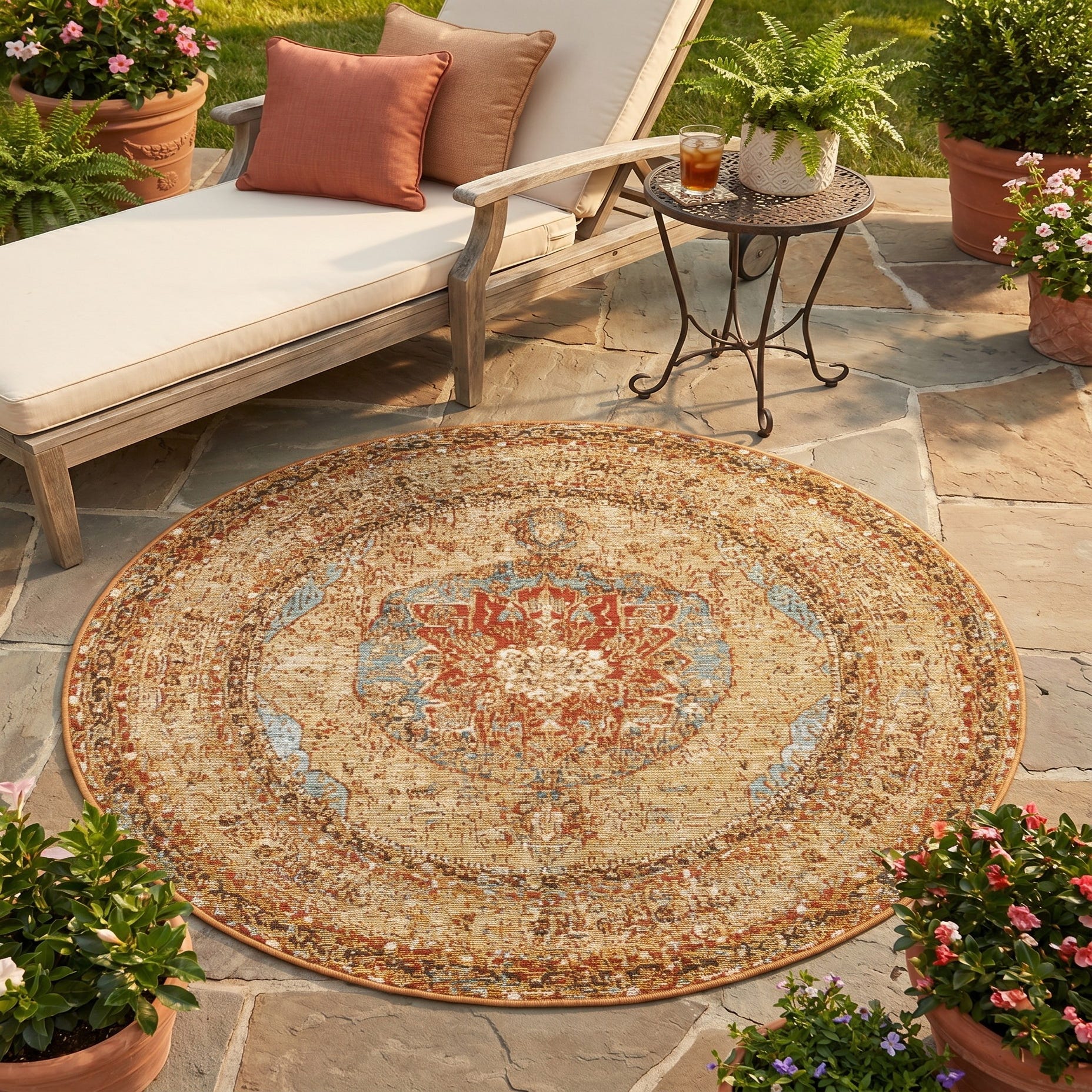 4' x 4' Easy-Clean Traditional Indoor / Outdoor Round Rug