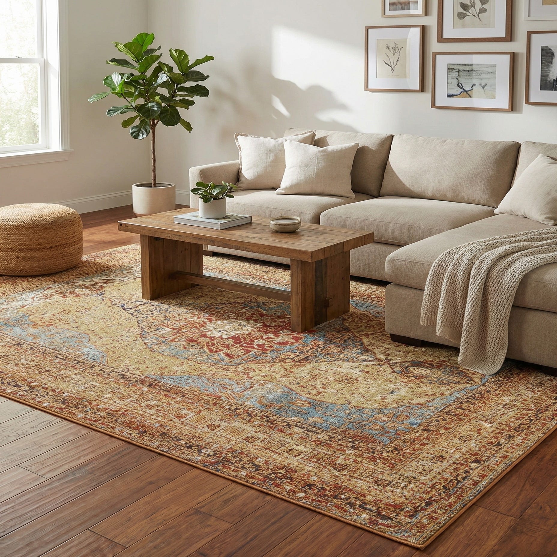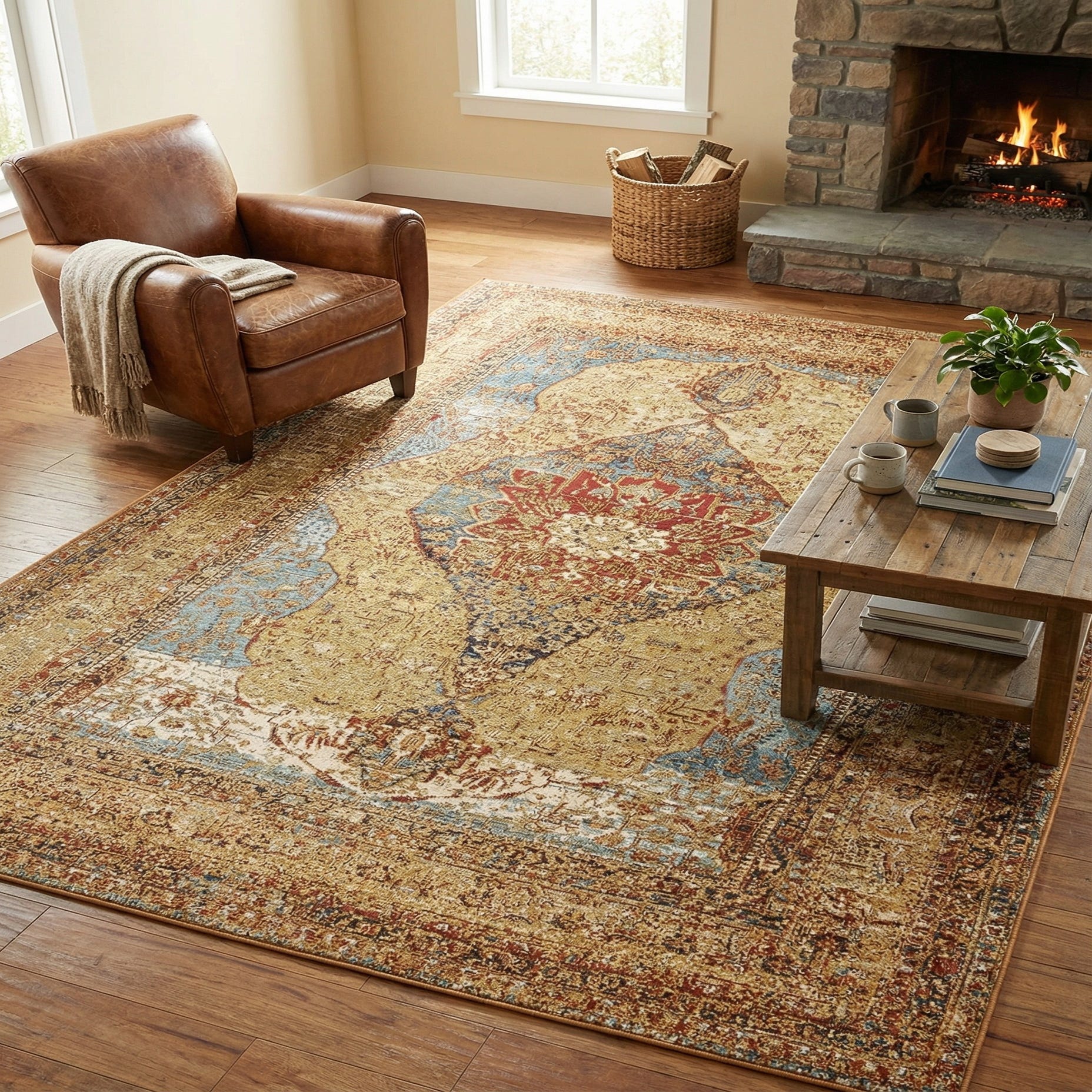 5' 3 x 8' Washable Traditional Indoor / Outdoor Rug