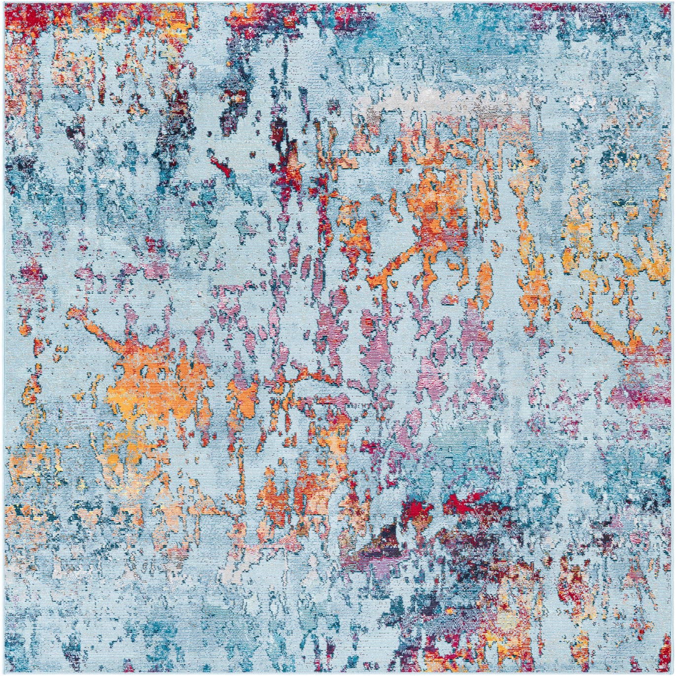 Primary color is Blue and Multi. Colors in this rug include: Blue and Multi, Black, Gray, Ivory, Orange, Yellow, Turquoise, Red.