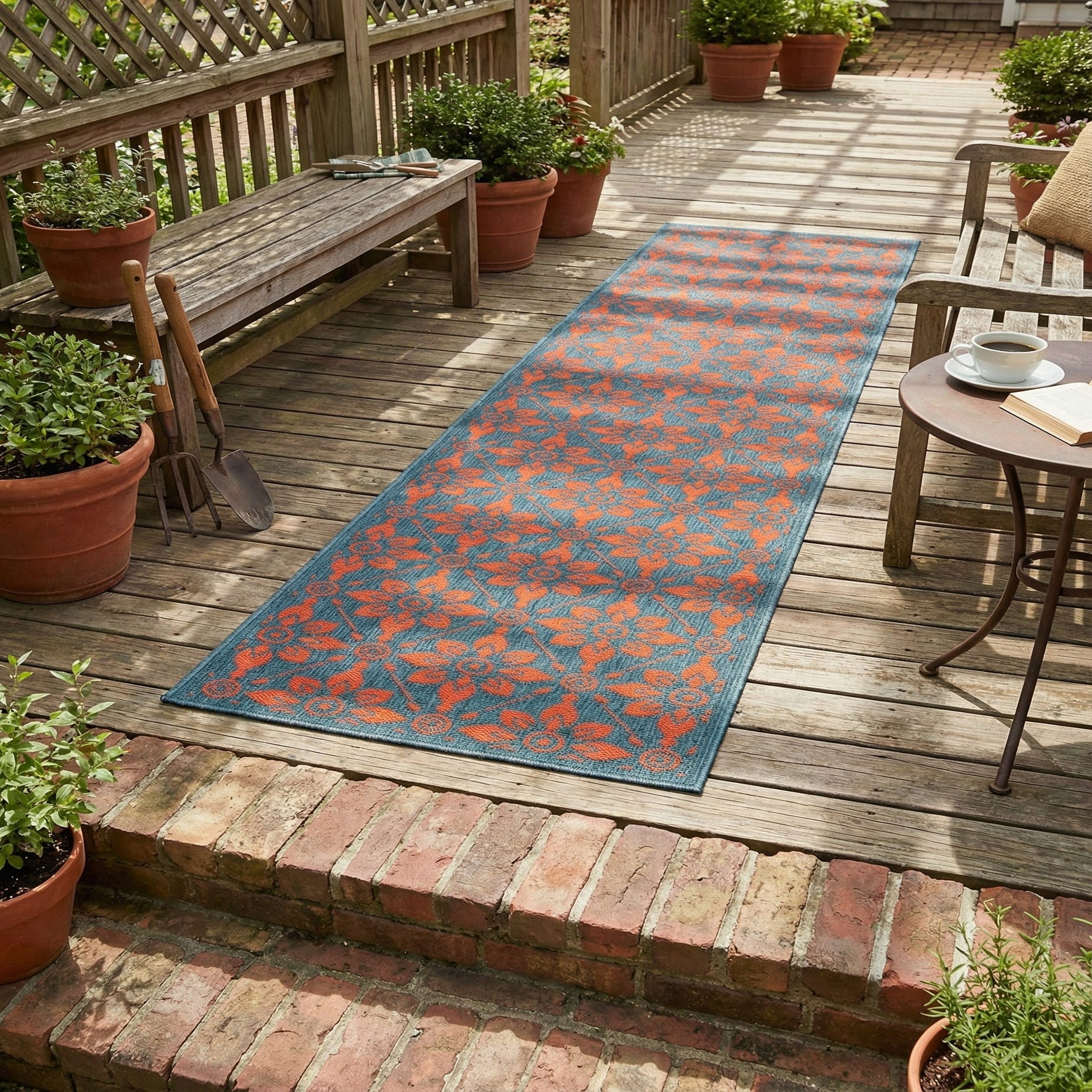 2' 7 x 12' Washable Trellis Indoor / Outdoor Runner Rug