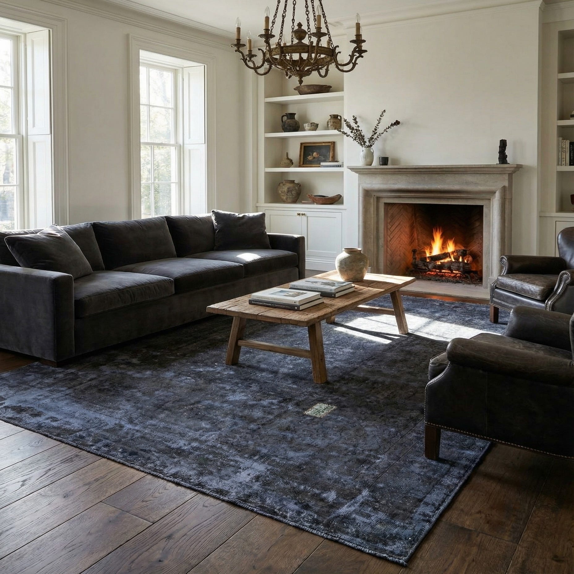 Primary color is Blue Gray. Colors in this rug include: Blue Gray, Black.