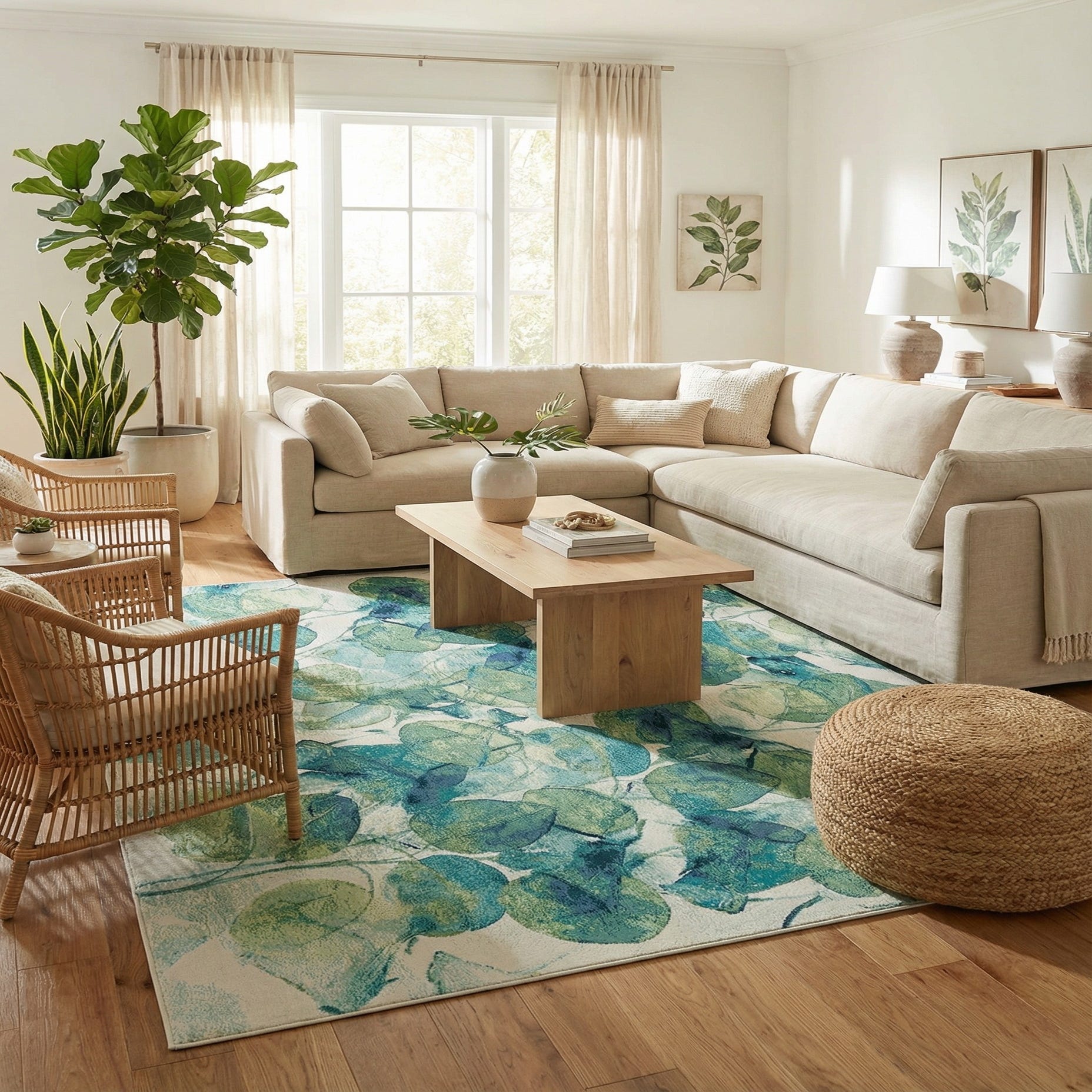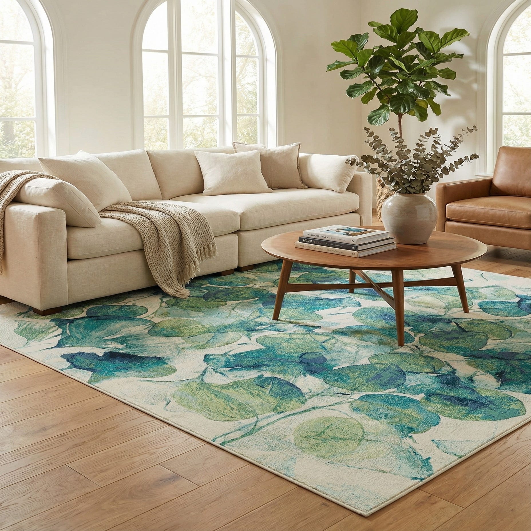 10' x 10' Washable Botanical Indoor / Outdoor Square Rug