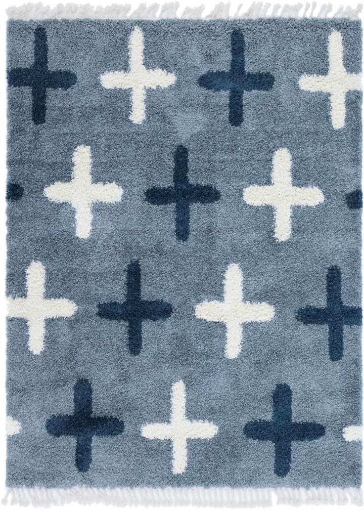 Primary color is Blue. Colors in this rug include: Blue, Ivory, Navy Blue.