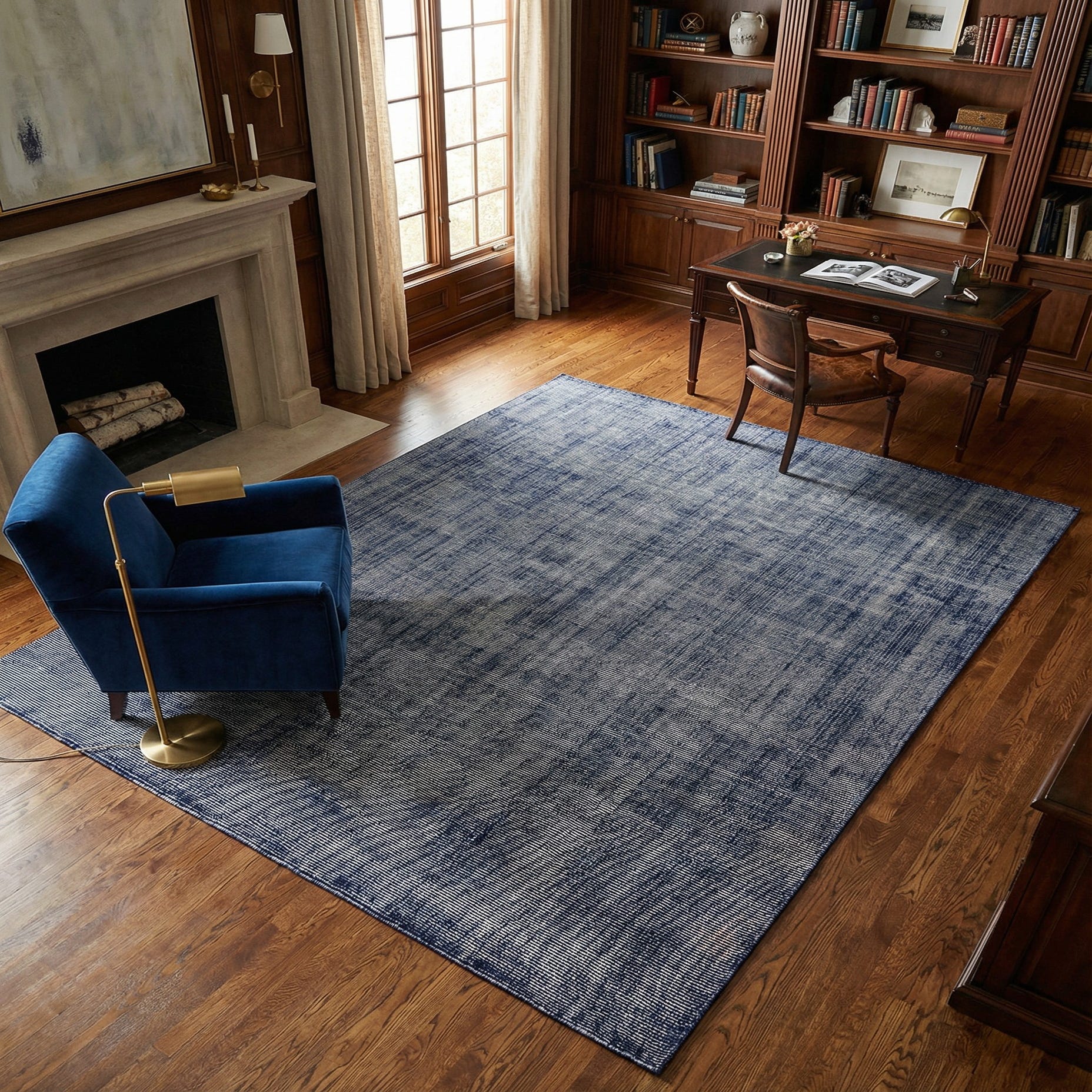 Primary color is Blueberry. Colors in this rug include: Blueberry, Ivory.