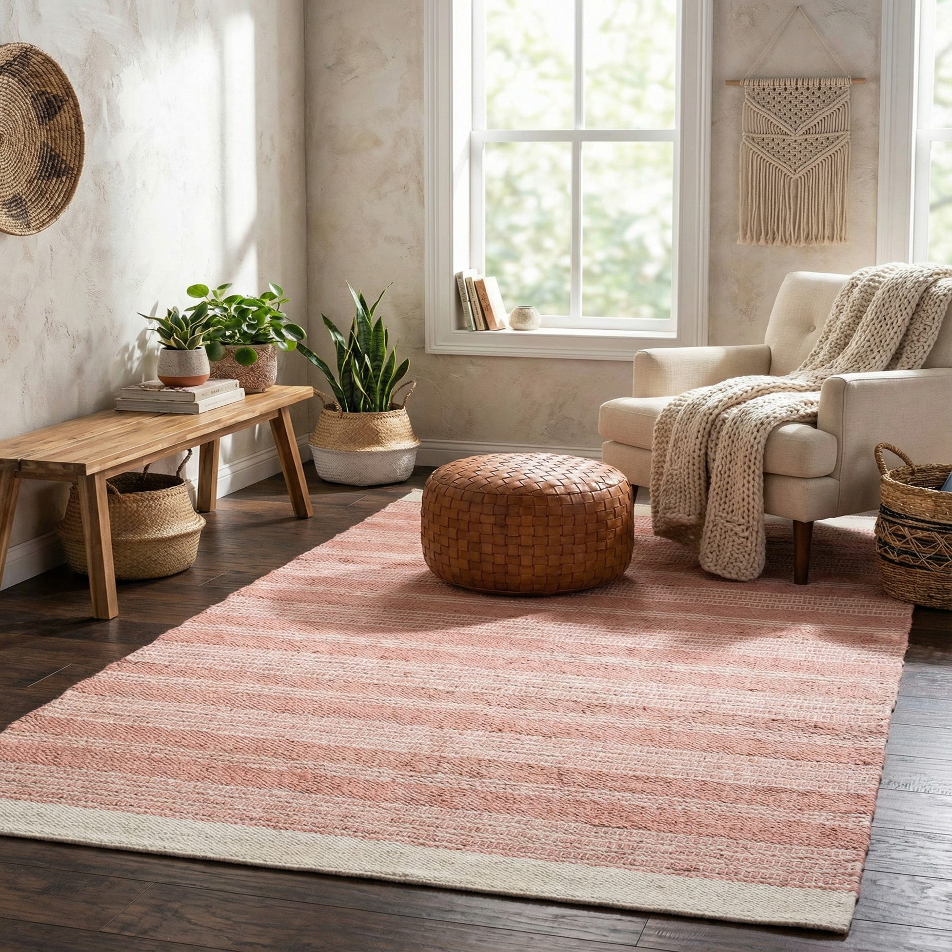 Primary color is Blush Pink. Colors in this rug include: Blush Pink, Ivory.