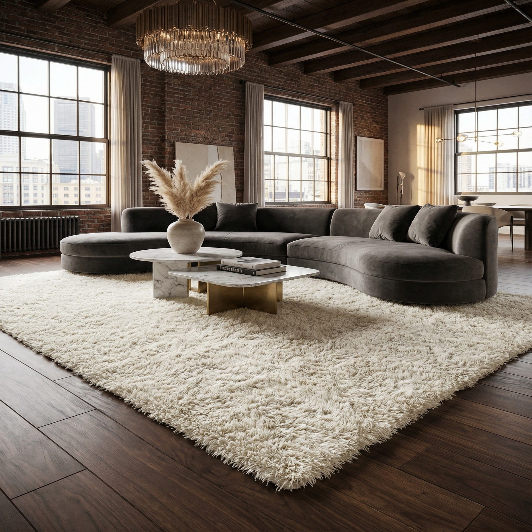 Lights, Camera, Glamour! Add a touch of old Hollywood Glam to your home with our new, luxurious Marilyn Monroe™ Shag Collection. These top-of-the-line Shag Rugs are made of 100% Polyester Fibers, giving it a shimmering, luminescent finish. The varying thickness and pile height of these rugs add visual depth and provides incomparable texture; making it our plushest, softest and most glamorous shag to date.