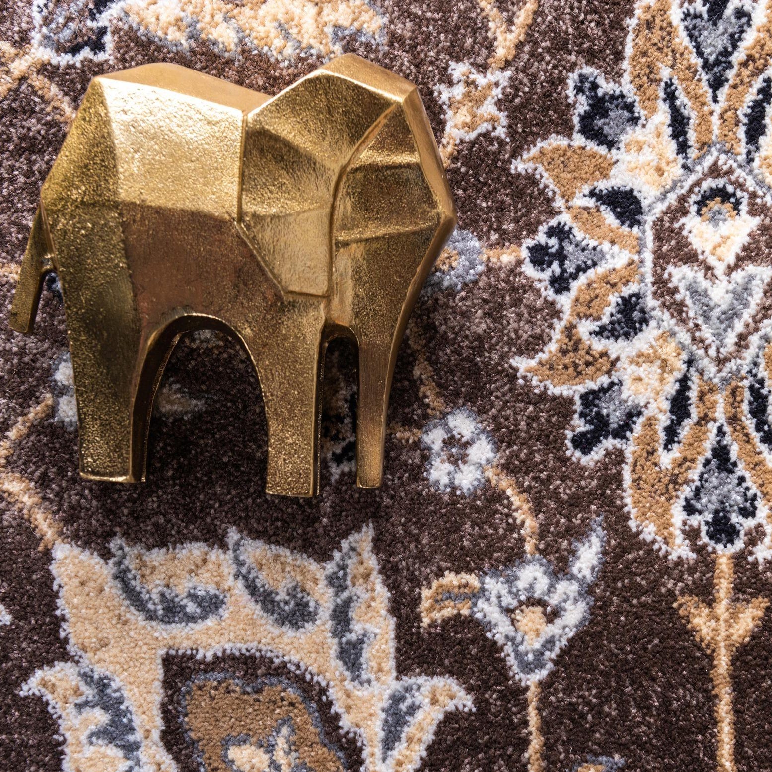 Primary color is Brown. Colors in this rug include: Brown, Black, Cream, Gray, Ivory, Tan.