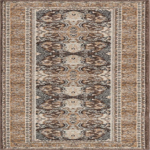 Primary color is Brown. Colors in this rug include: Brown, Black, Cream, Gray, Ivory, Tan.