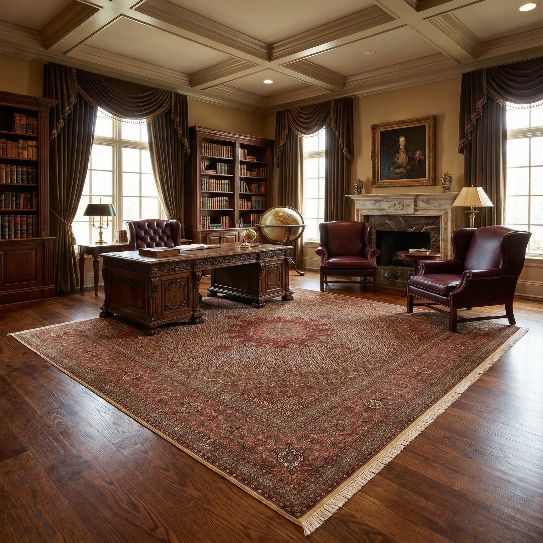 Primary color is Brown. Colors in this rug include: Brown, Language: en