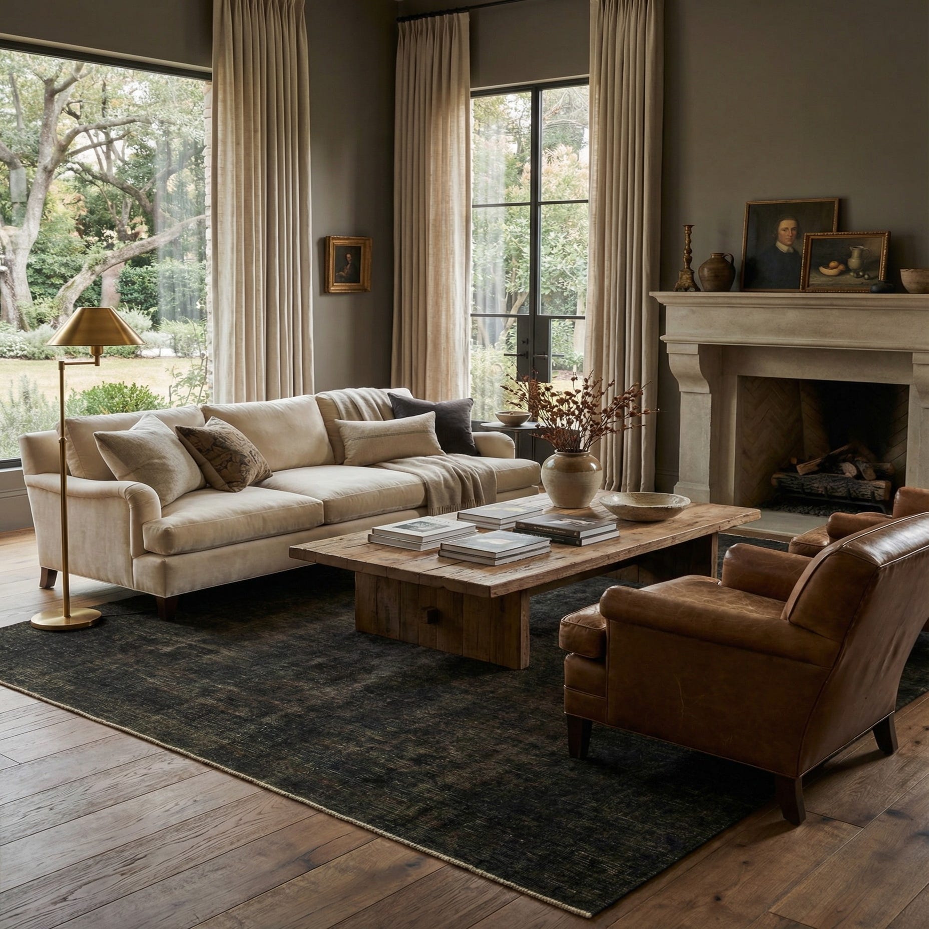 Primary color is Brown. Colors in this rug include: Brown, Green, Gray.