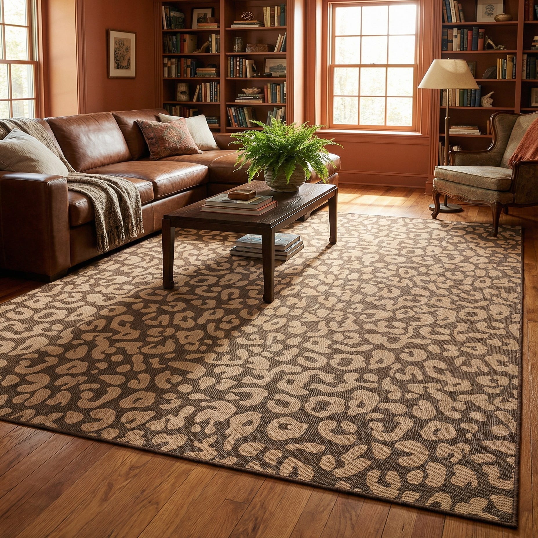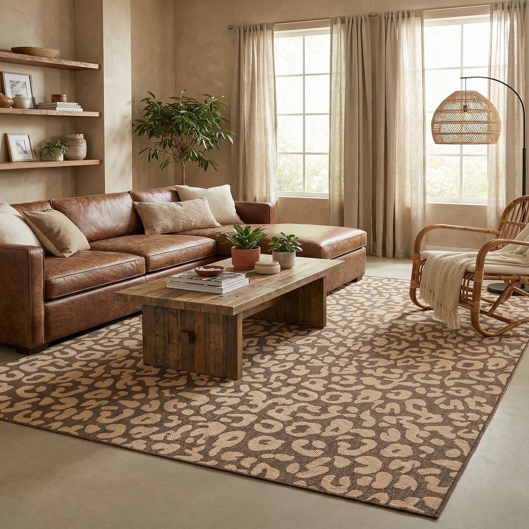 Primary color is Brown. Colors in this rug include: Brown, Natural.