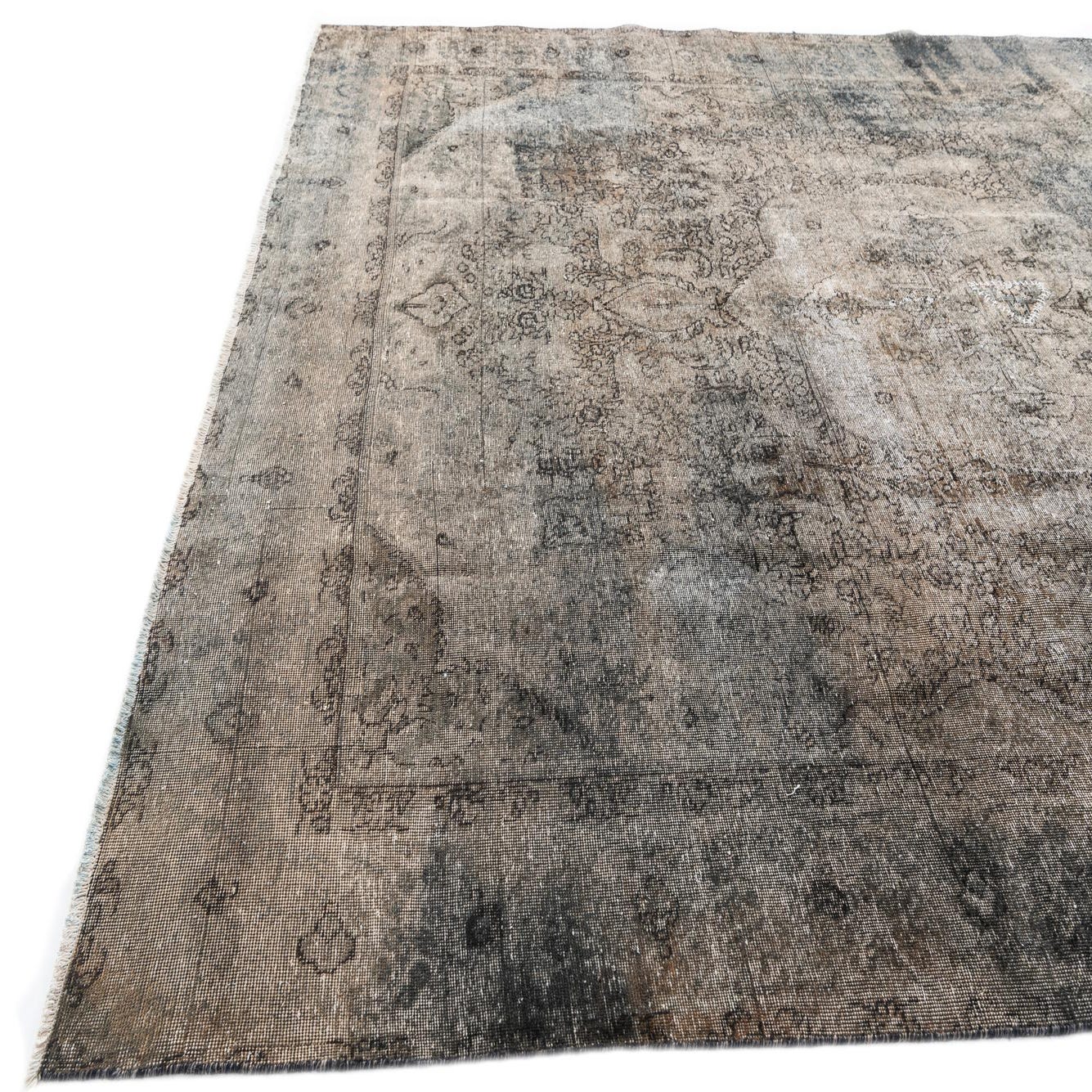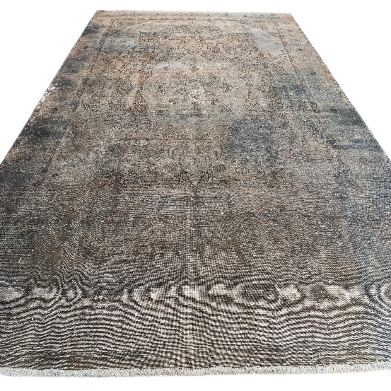 This Persian Ultra Vintage rug is an antique Persian Rug that has been washed, over-dyed, and then shaved down to a low pile. Look at the detail pictures to fully appreciate the uniqueness of this piece.