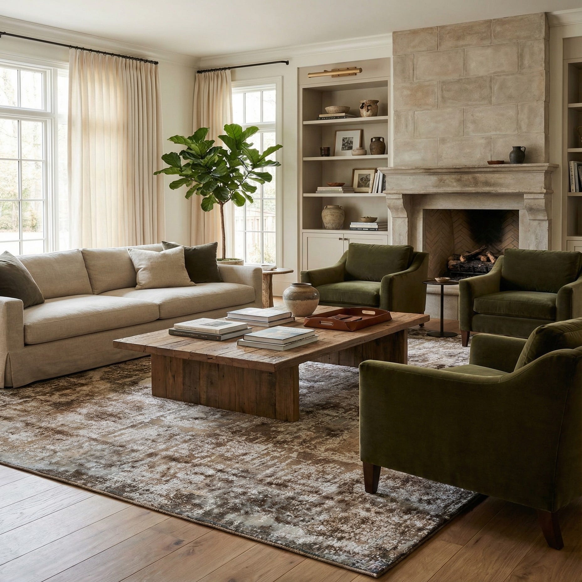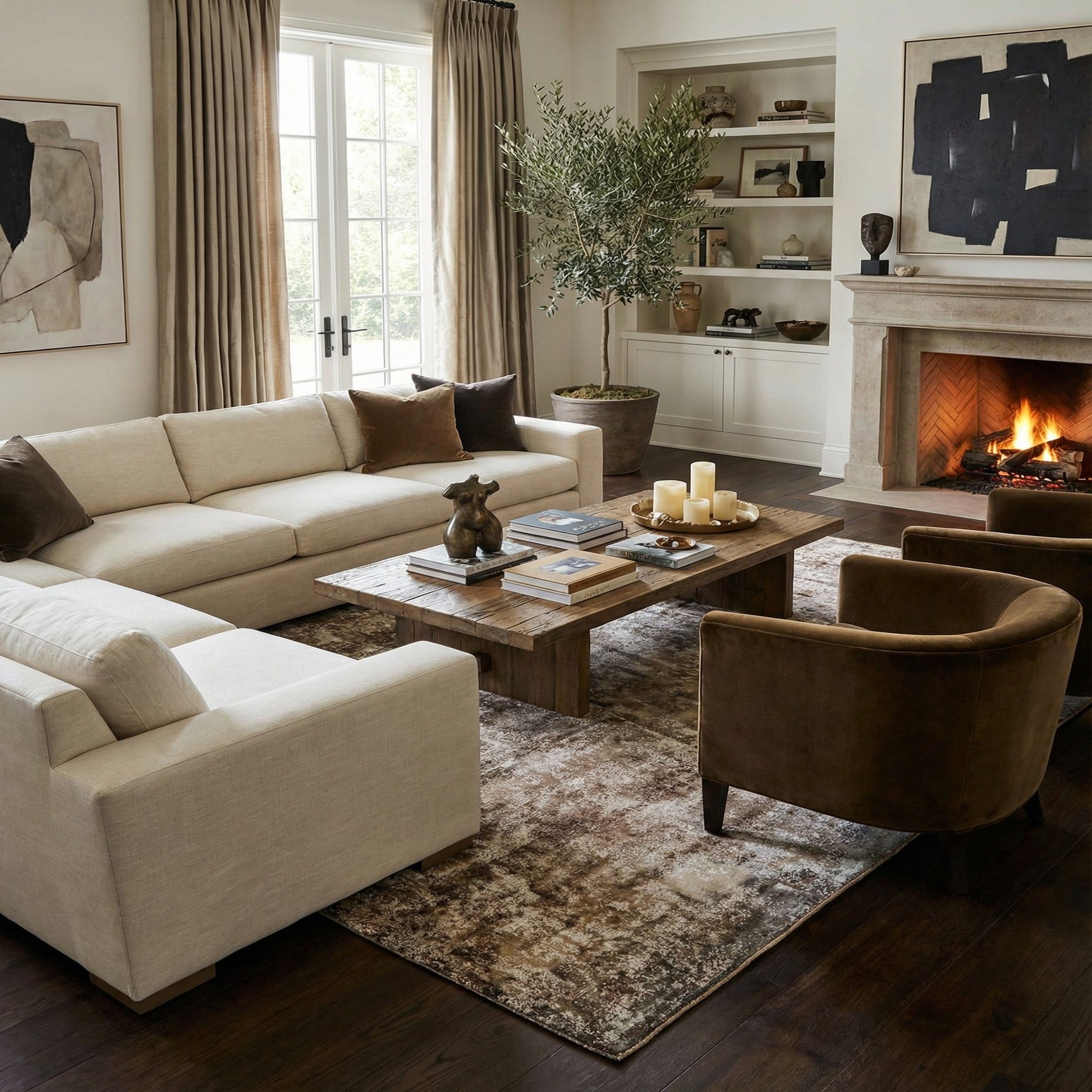 Primary color is Brown. Colors in this rug include: Brown, Beige, Ivory.