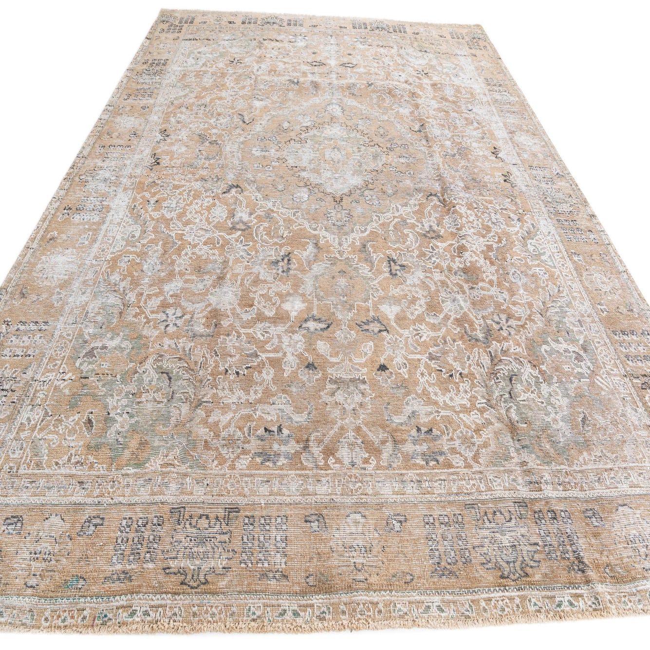 This Persian Ultra Vintage rug is an antique Persian Rug that has been washed, over-dyed, and then shaved down to a low pile. Look at the detail pictures to fully appreciate the uniqueness of this piece.